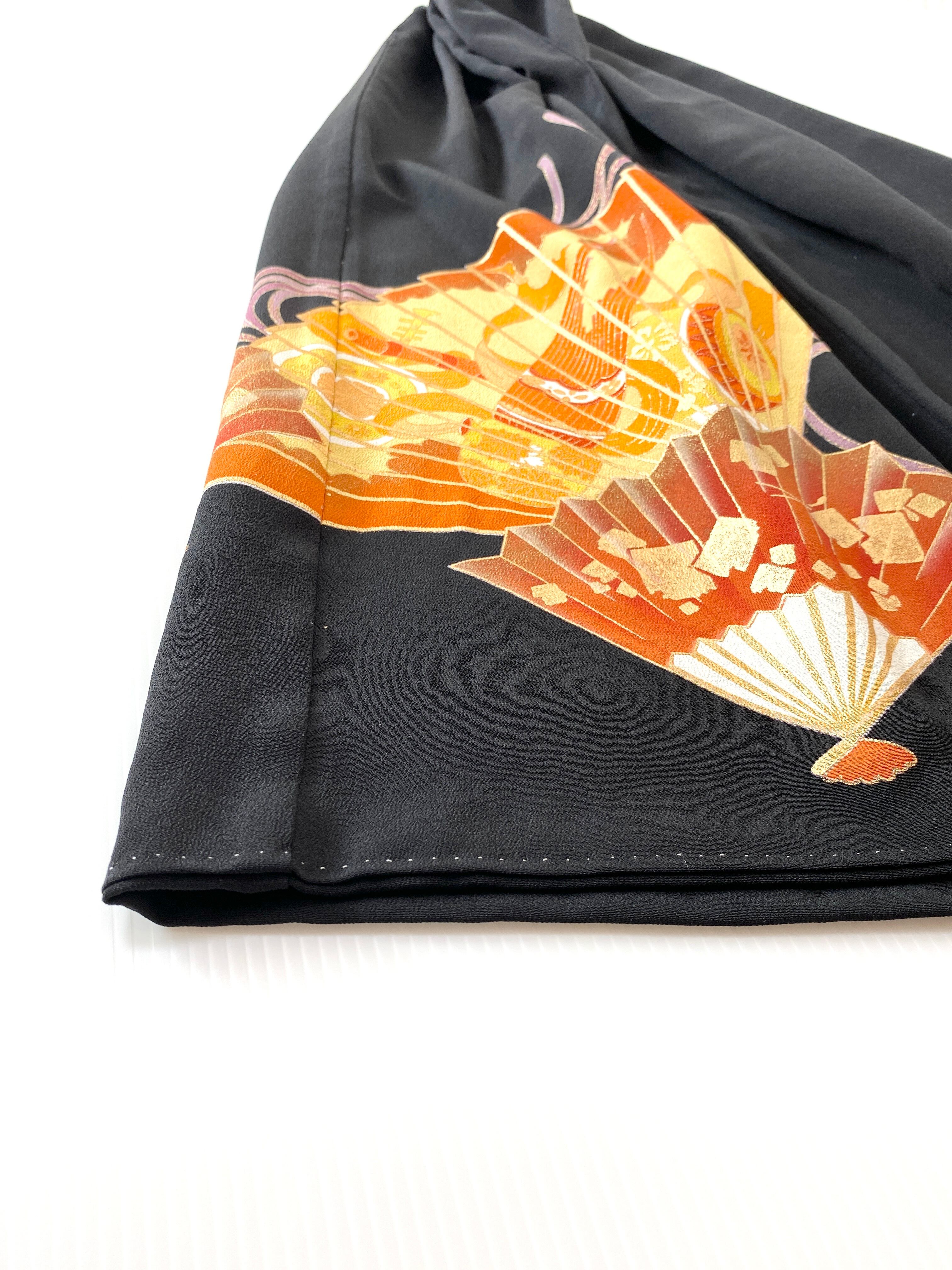 大人可愛いセレブ着物スカートフリーサイズ黒留袖着物リメイクウエストゴムロングスカート