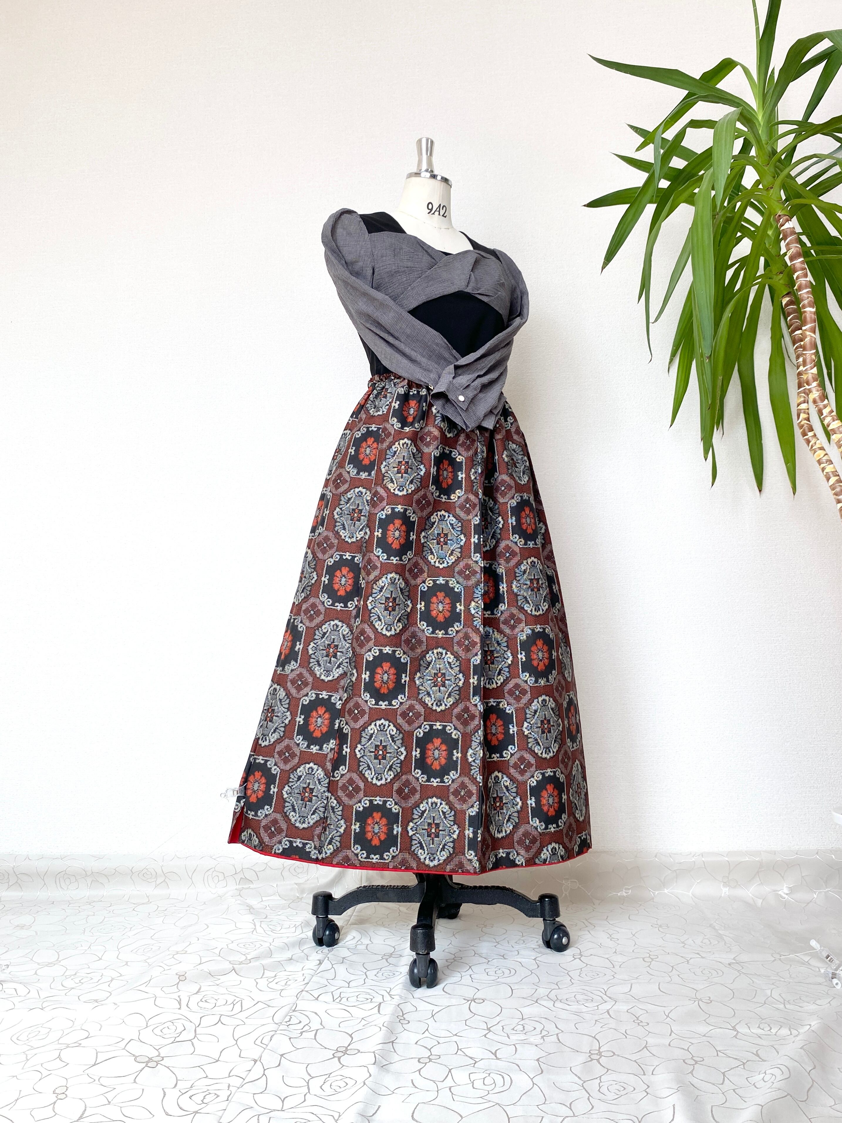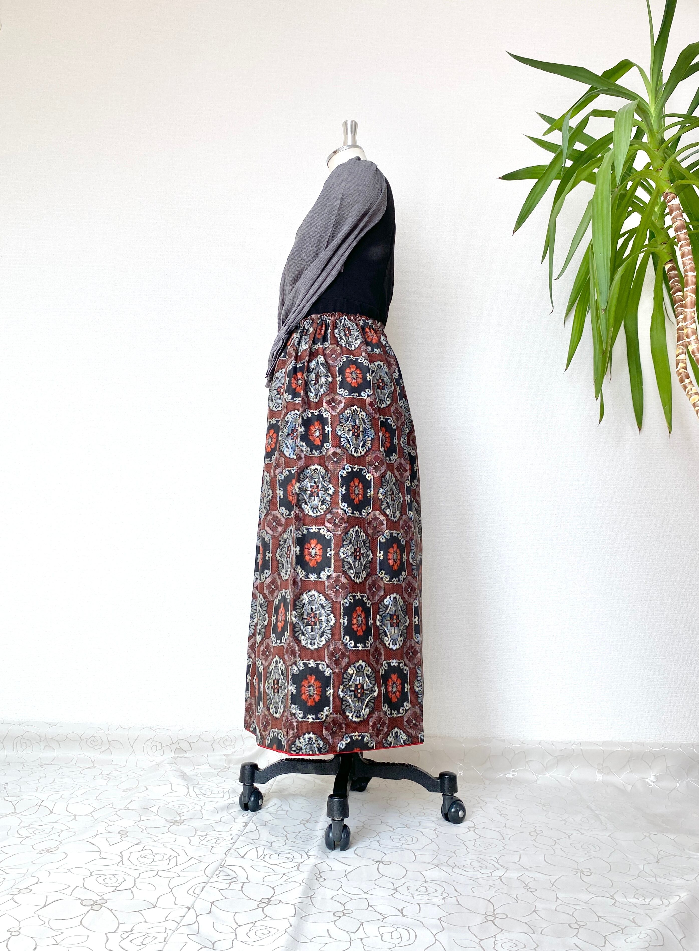 大人可愛いセレブ大島紬着物リメイクウエストゴムロングスカートフリーサイズ