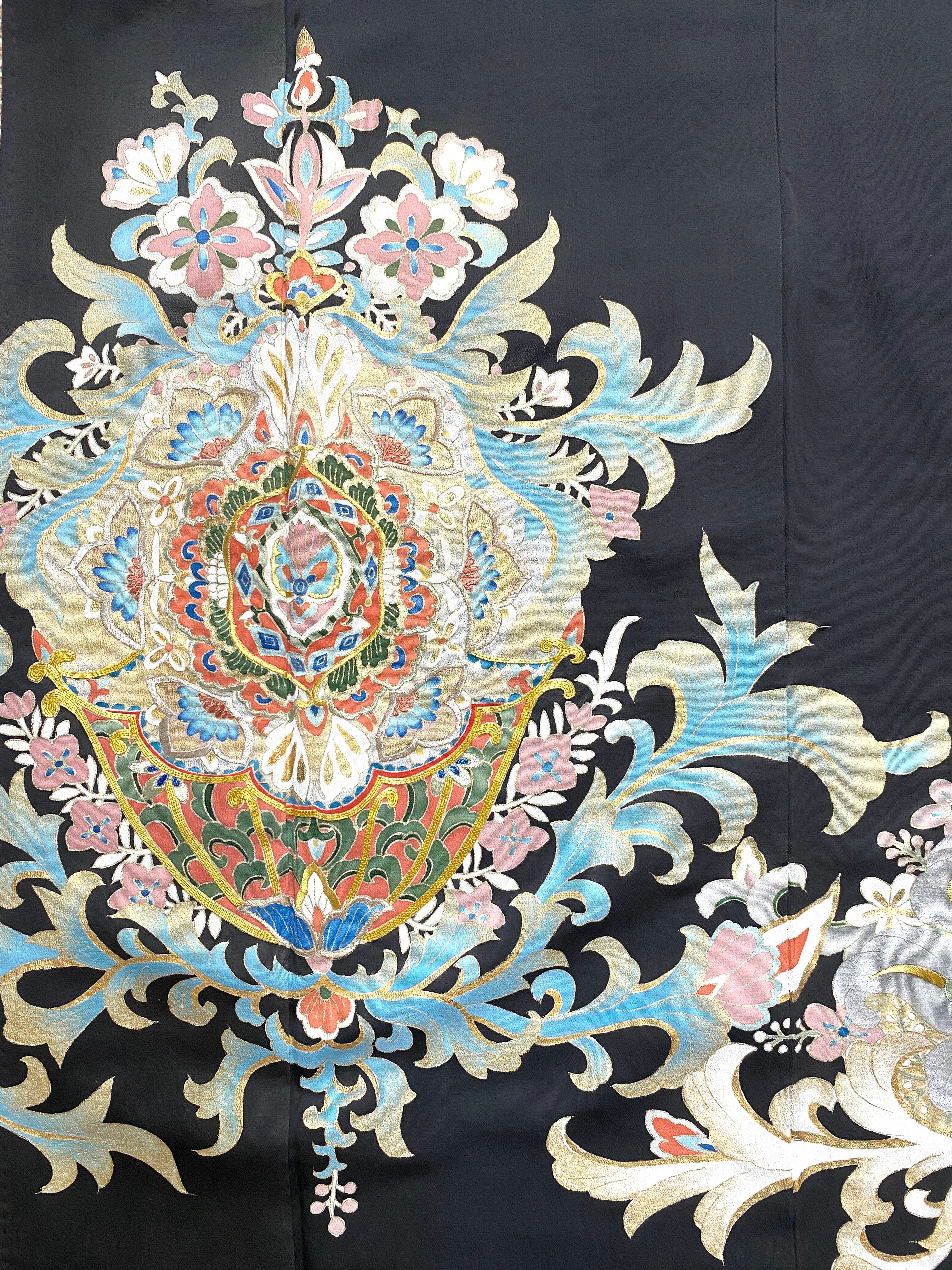 大人可愛いセレブ着物スカートフリーサイズ黒留袖着物リメイクウエストゴムロングスカート