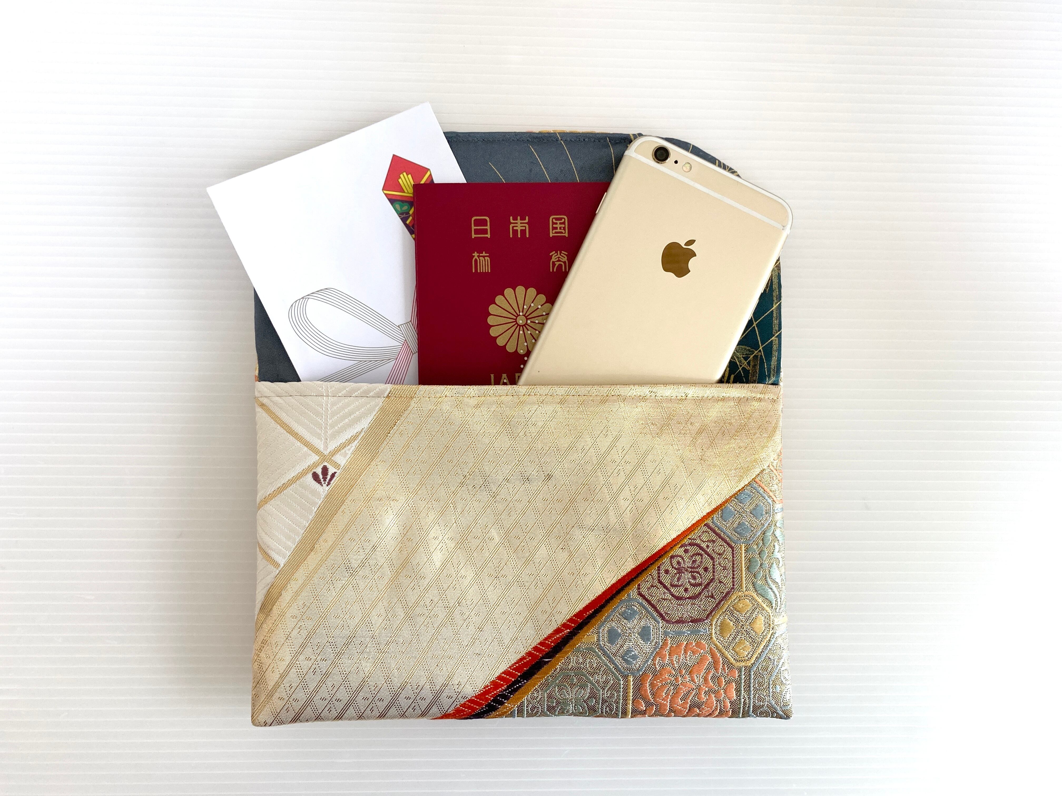 着物と帯をリメイクし作製したマルチケースです