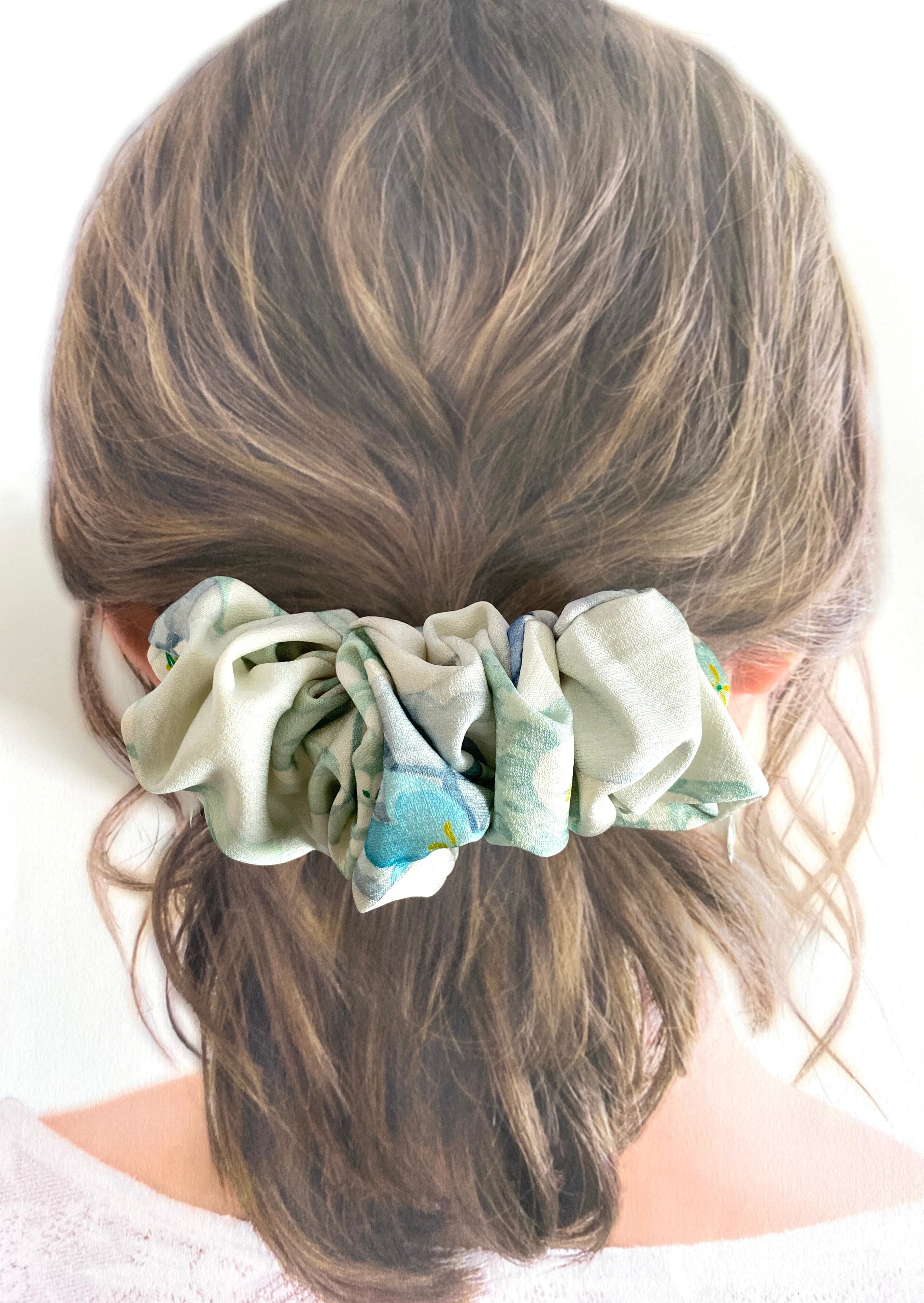 着物布生地なので柔らかで薄い布生地な為触り心地が良く滑らかで髪結びの装着がとても良いシュシュヘアゴムです