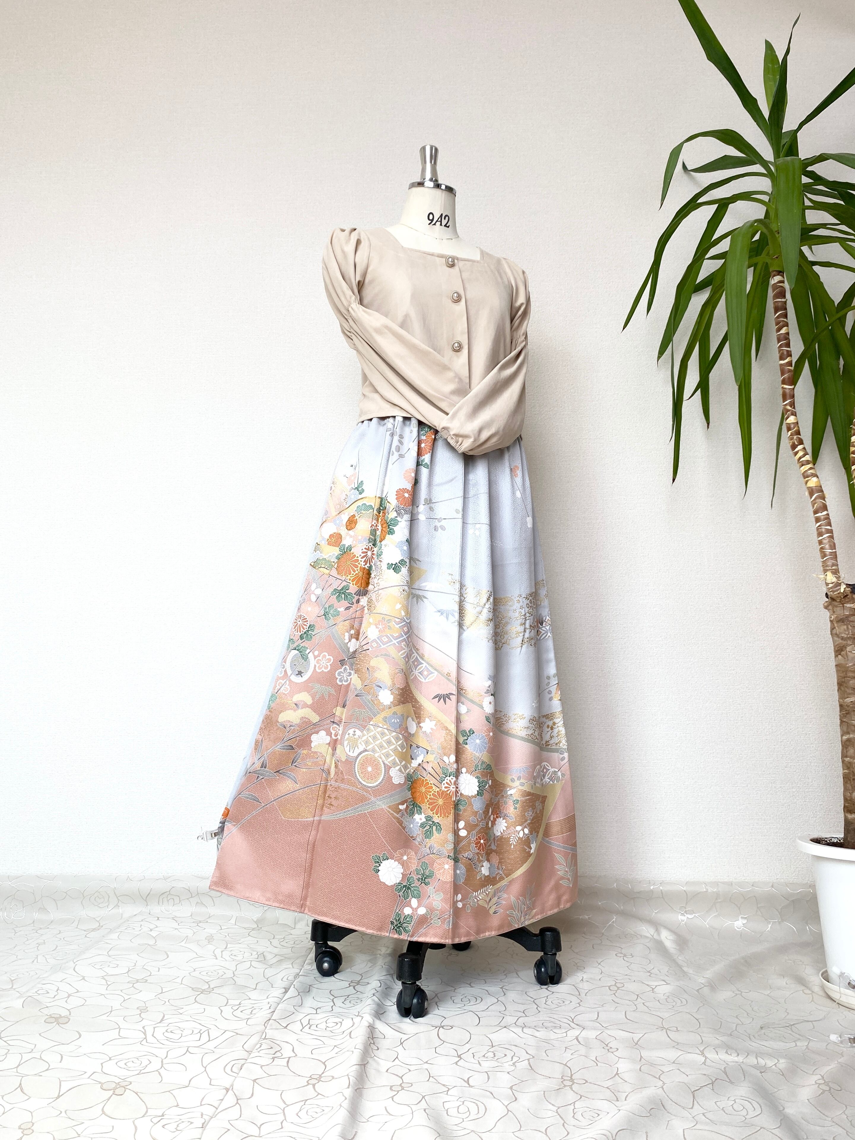 大人可愛いセレブ着物スカートフリーサイズ1点物着物リメイクウエストゴムロングスカートフリーサイズ送料込みハンドメイドNO.5633