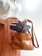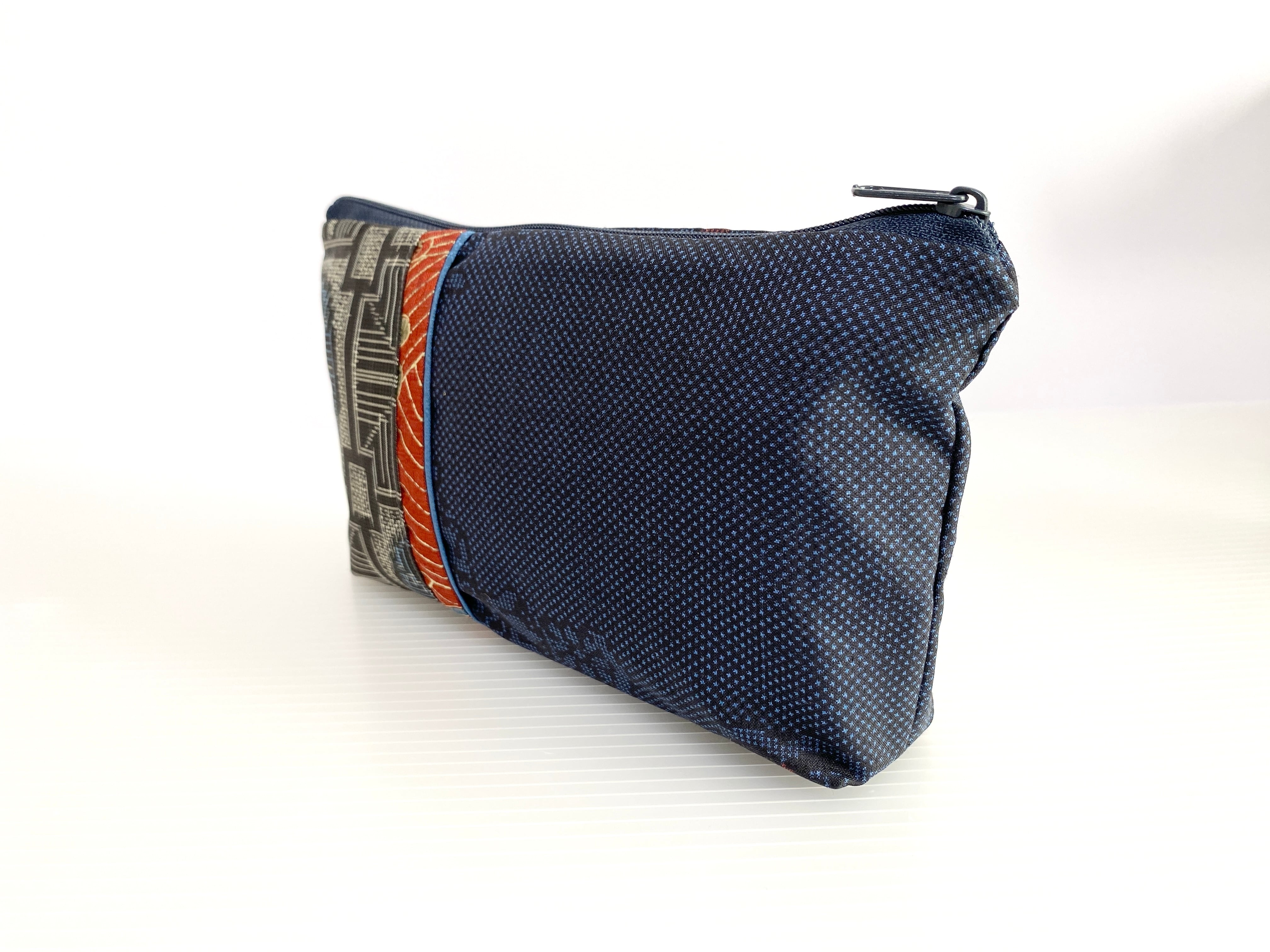 大島紬の着物をリメイクして作製したポーチでハンドメイド品です