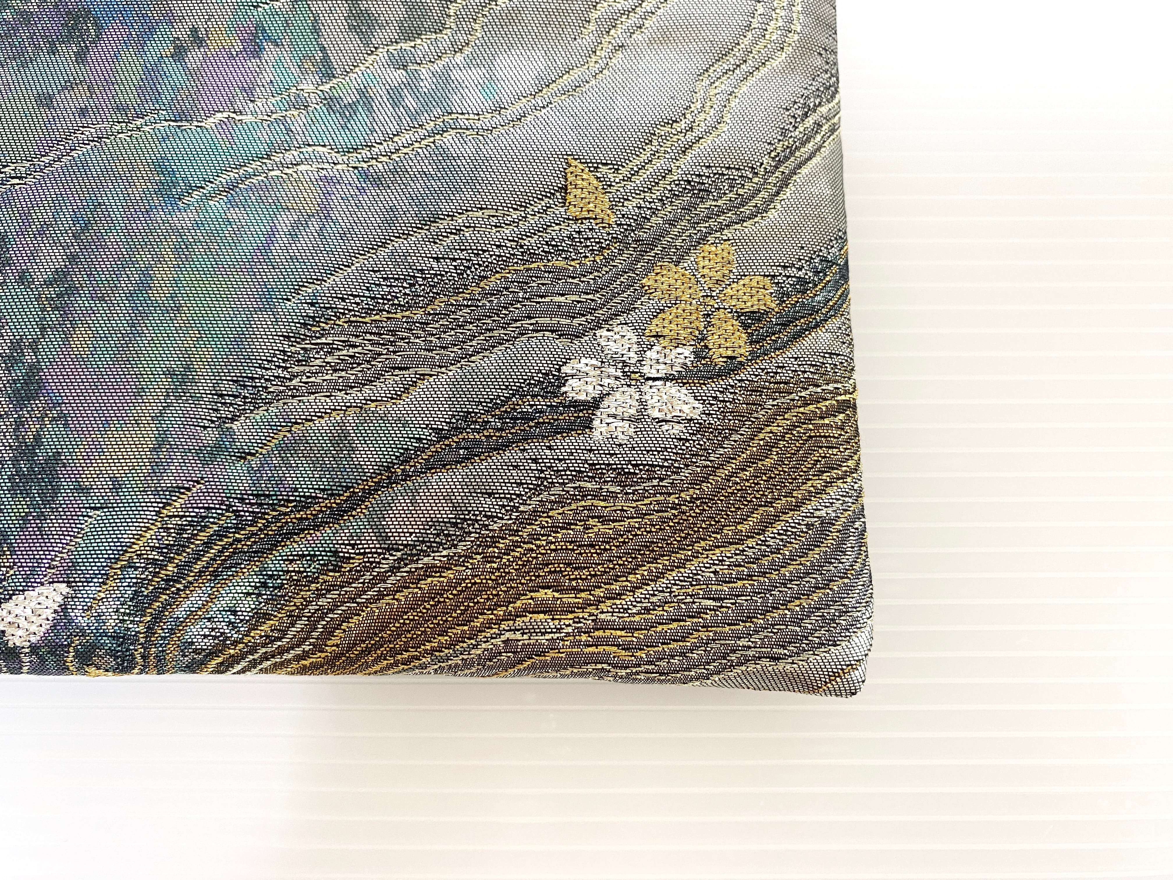 触り心地が滑らかで手にしっくりとくる安心感。絵柄の鮮やかさは日本の帯ならではの存在感で素晴らしく華やかな美しさです