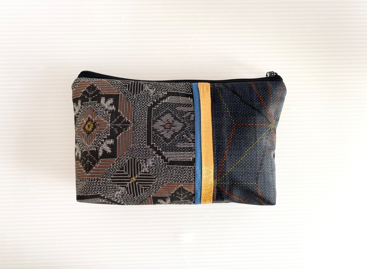 大島紬の着物をリメイクして作製したポーチでハンドメイド品です