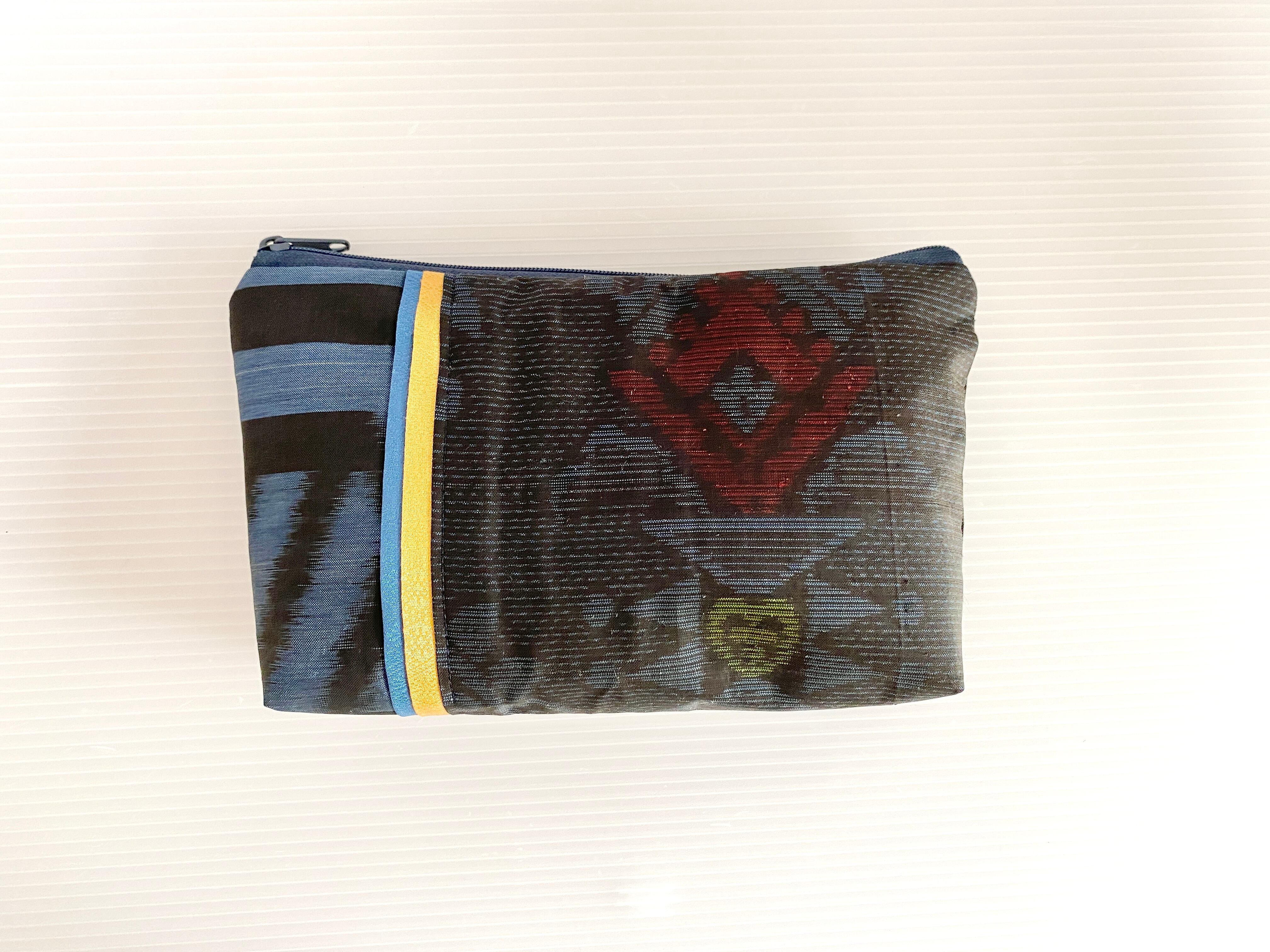 大島紬の着物をリメイクして作製したポーチでハンドメイド品です