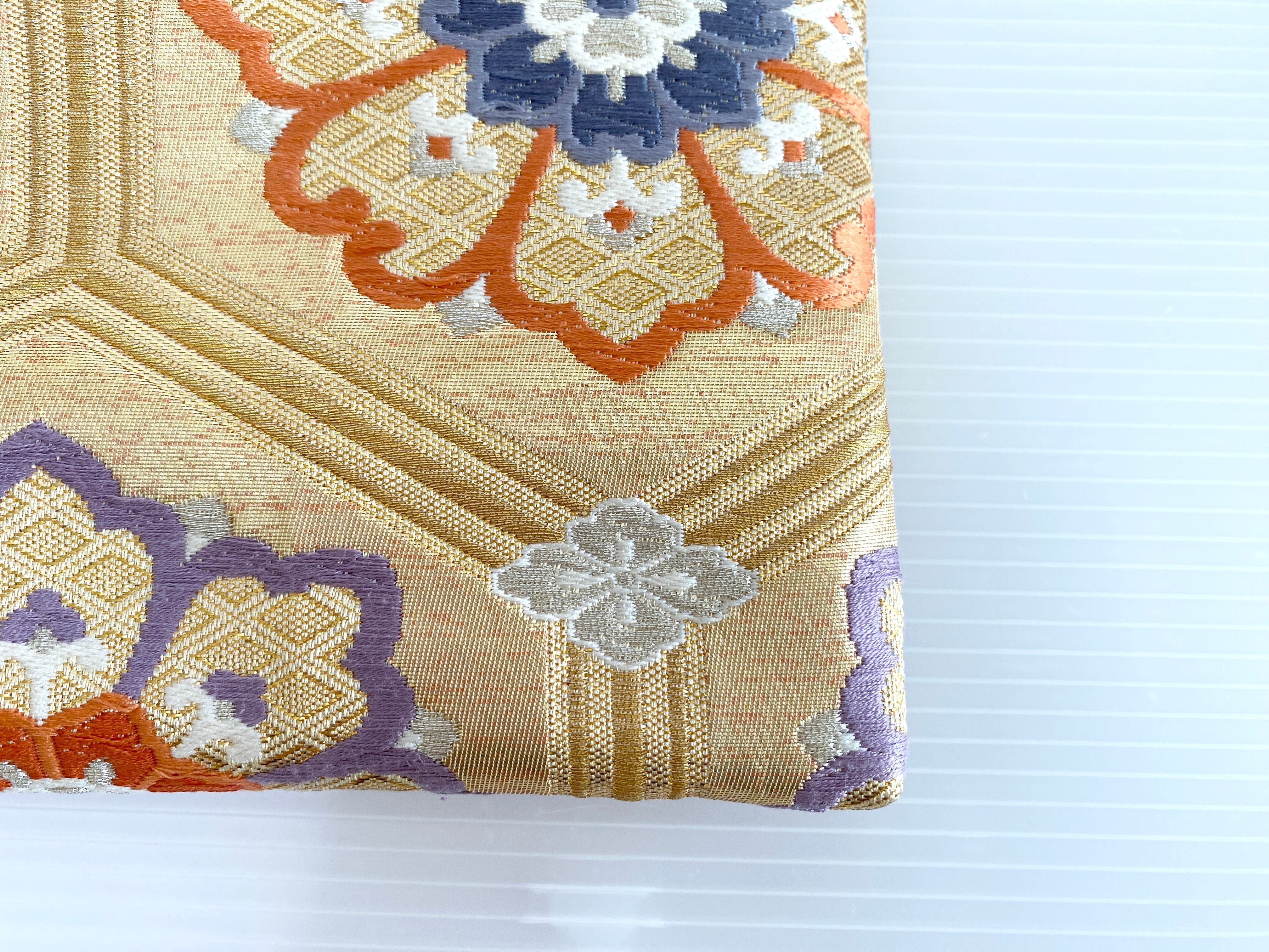 触り心地が滑らかで手にしっくりとくる安心感。絵柄の鮮やかさは日本の帯ならではの存在感で素晴らしく華やかな美しさです