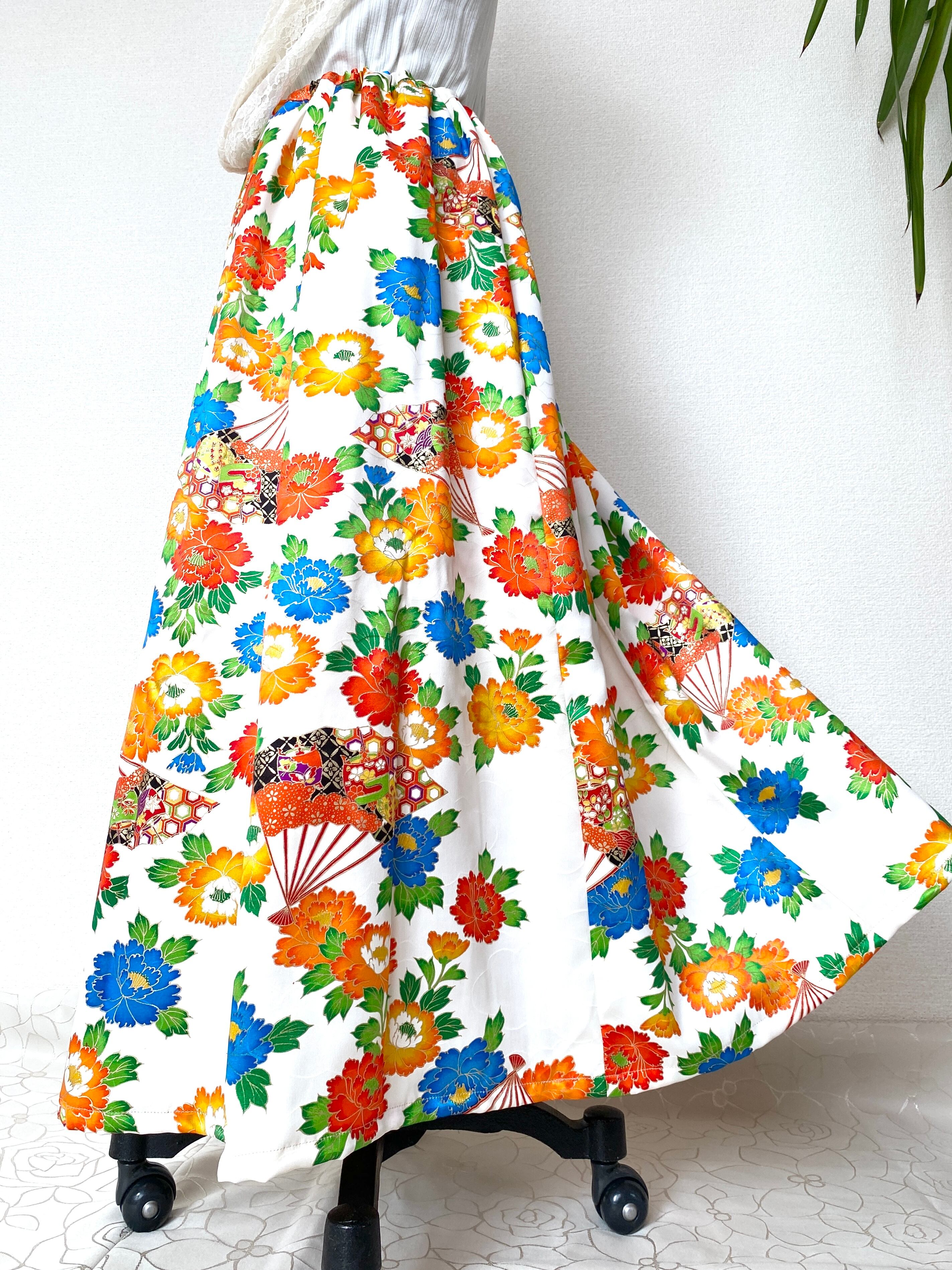 大人可愛い着物リメイクウエストゴムロングスカートフリーサイズ