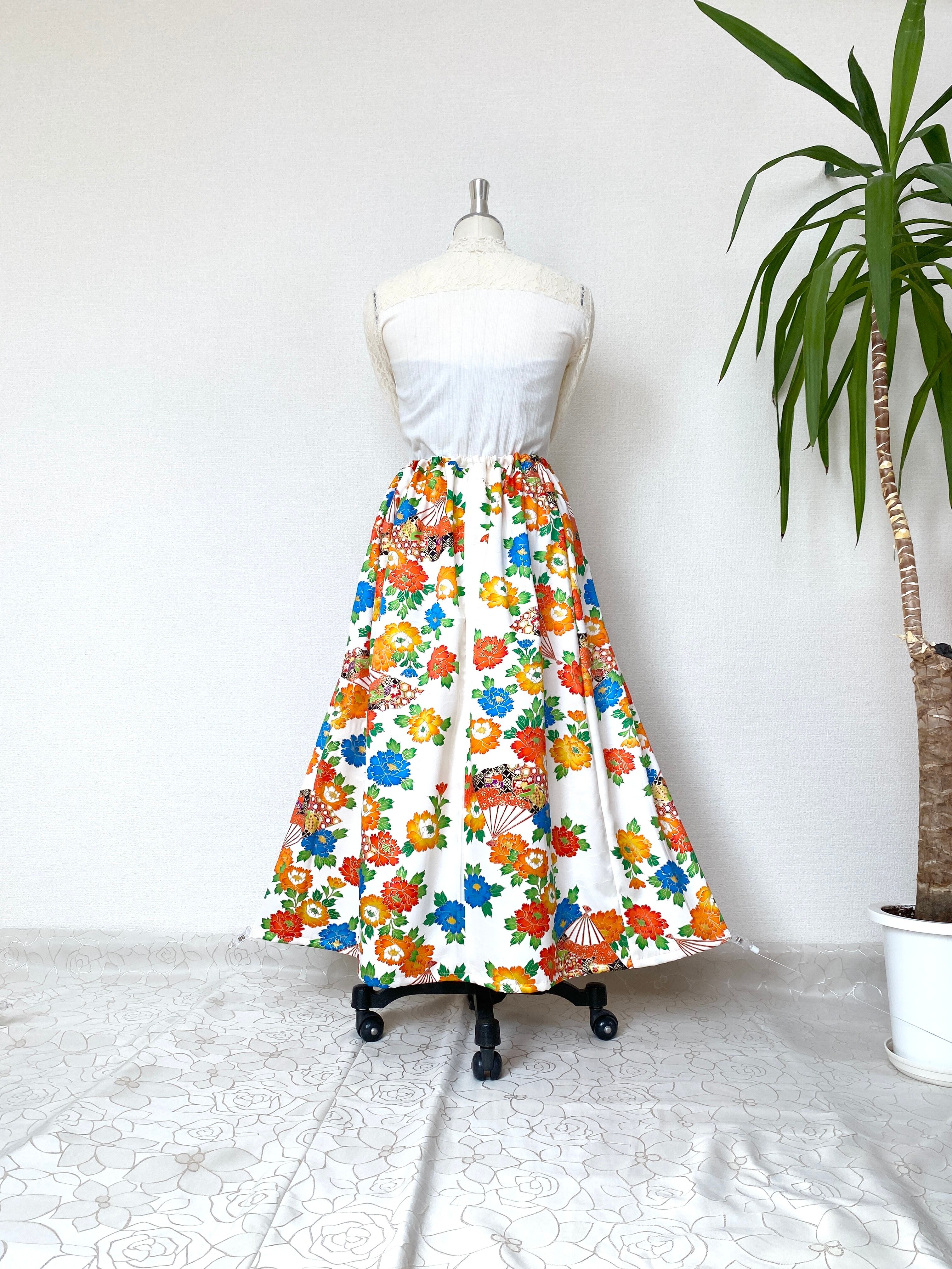 大人可愛い着物スカートフリーサイズ1点物着物リメイクウエストゴムロングスカートフリーサイズ送料込みハンドメイドNO.5673