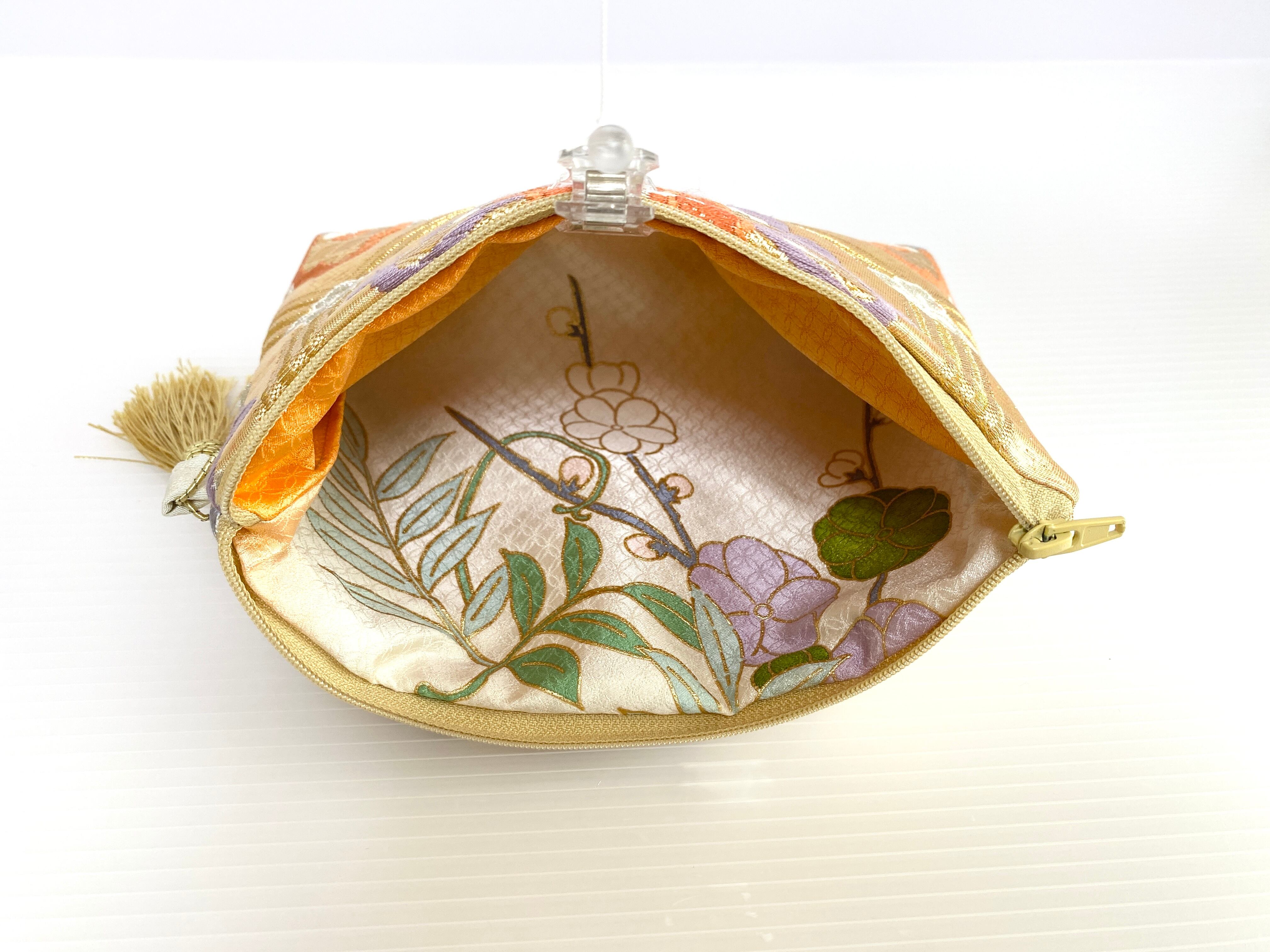 大人可愛いセレブポーチ帯リメイクポーチ化粧ポーチマルチポーチ着物リメイクポーチハンドメイド送料込みNO.5687
