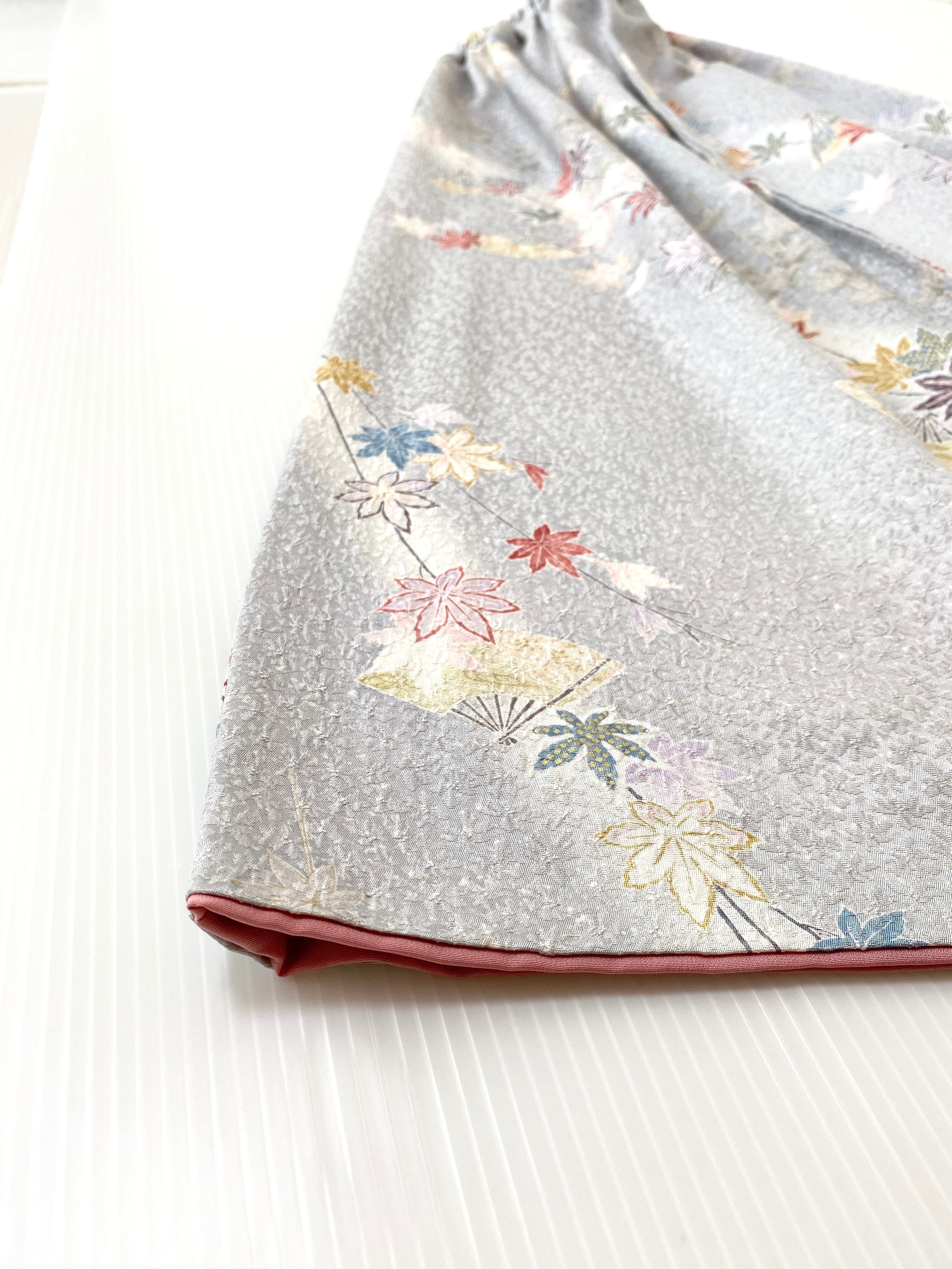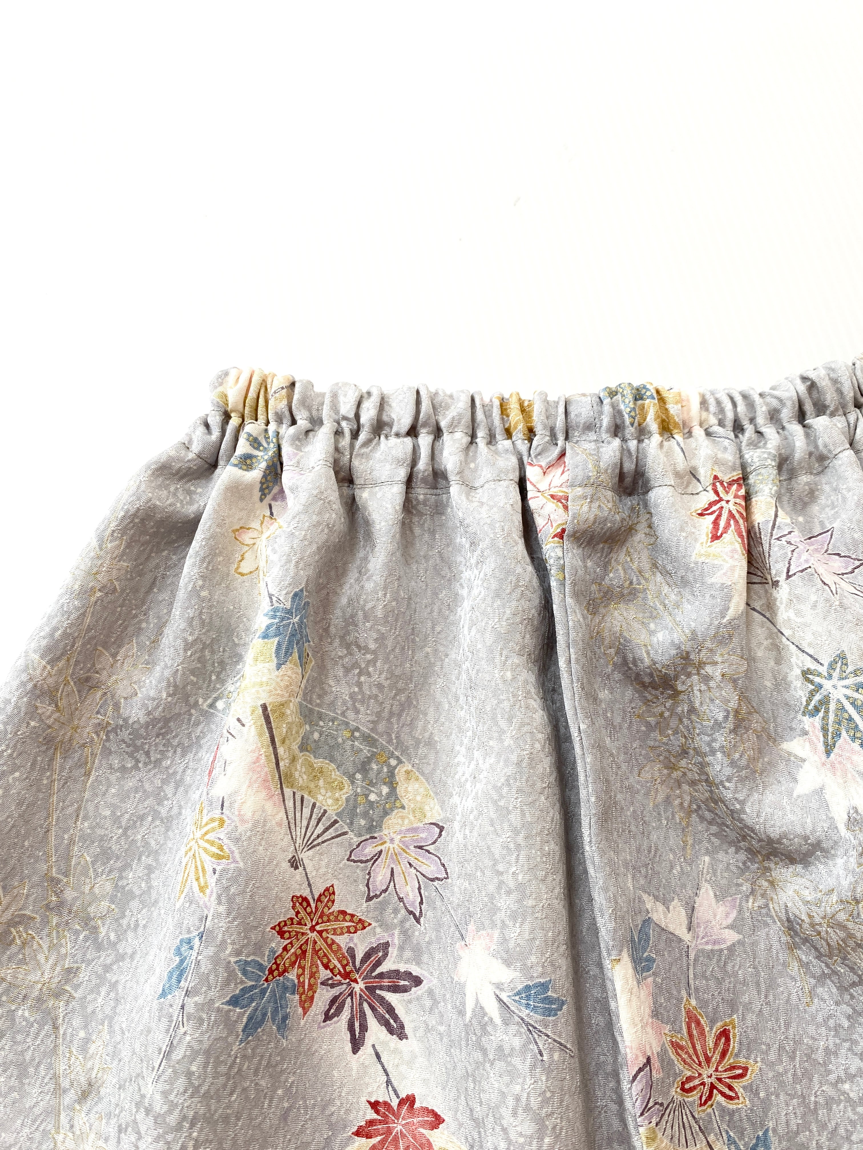 着物をリメイクして作製したウエストゴムロングドレススカートフリーサイズです