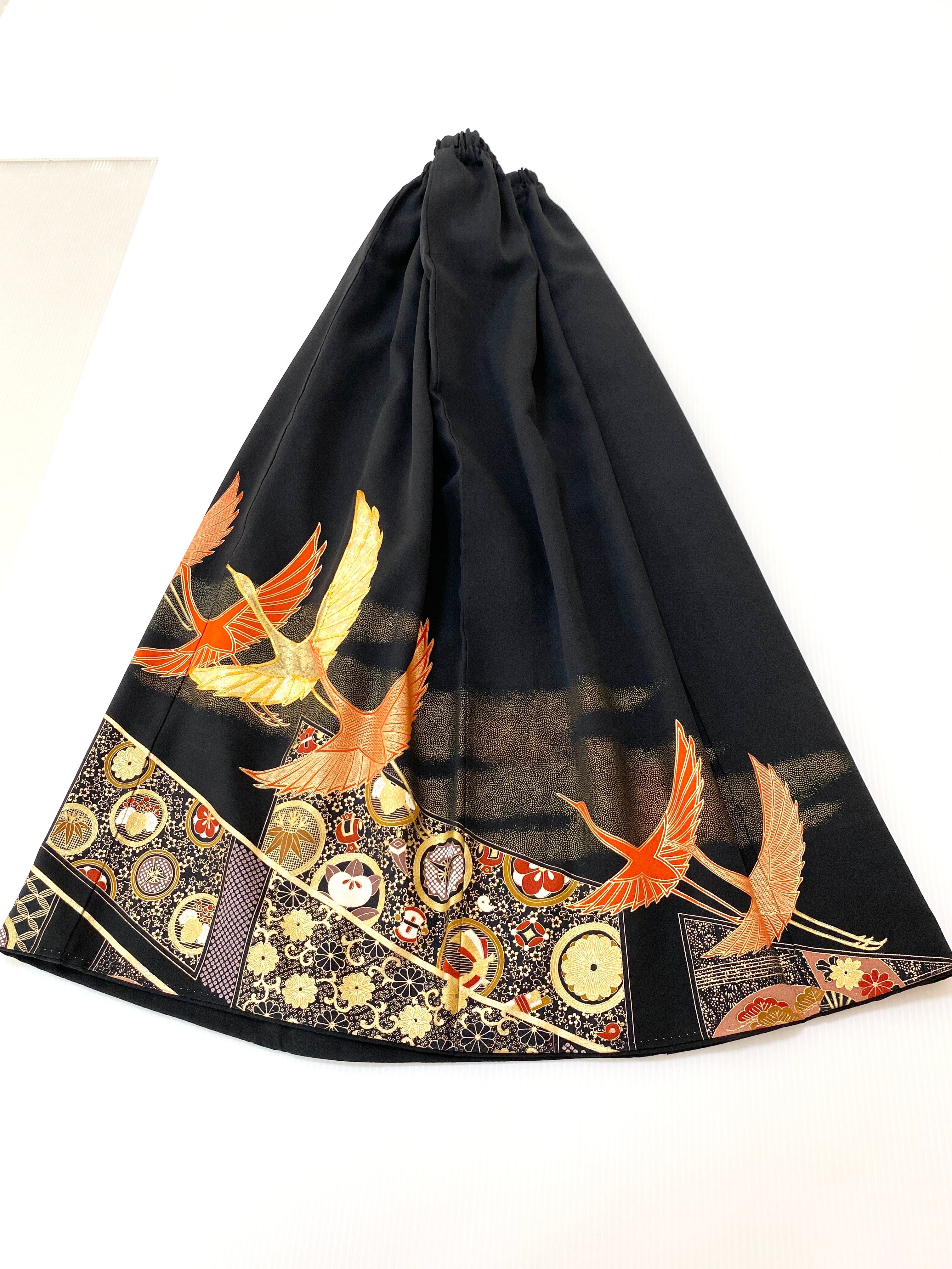 大人可愛いセレブ着物スカートフリーサイズ黒留袖着物リメイクウエストゴムロングスカート