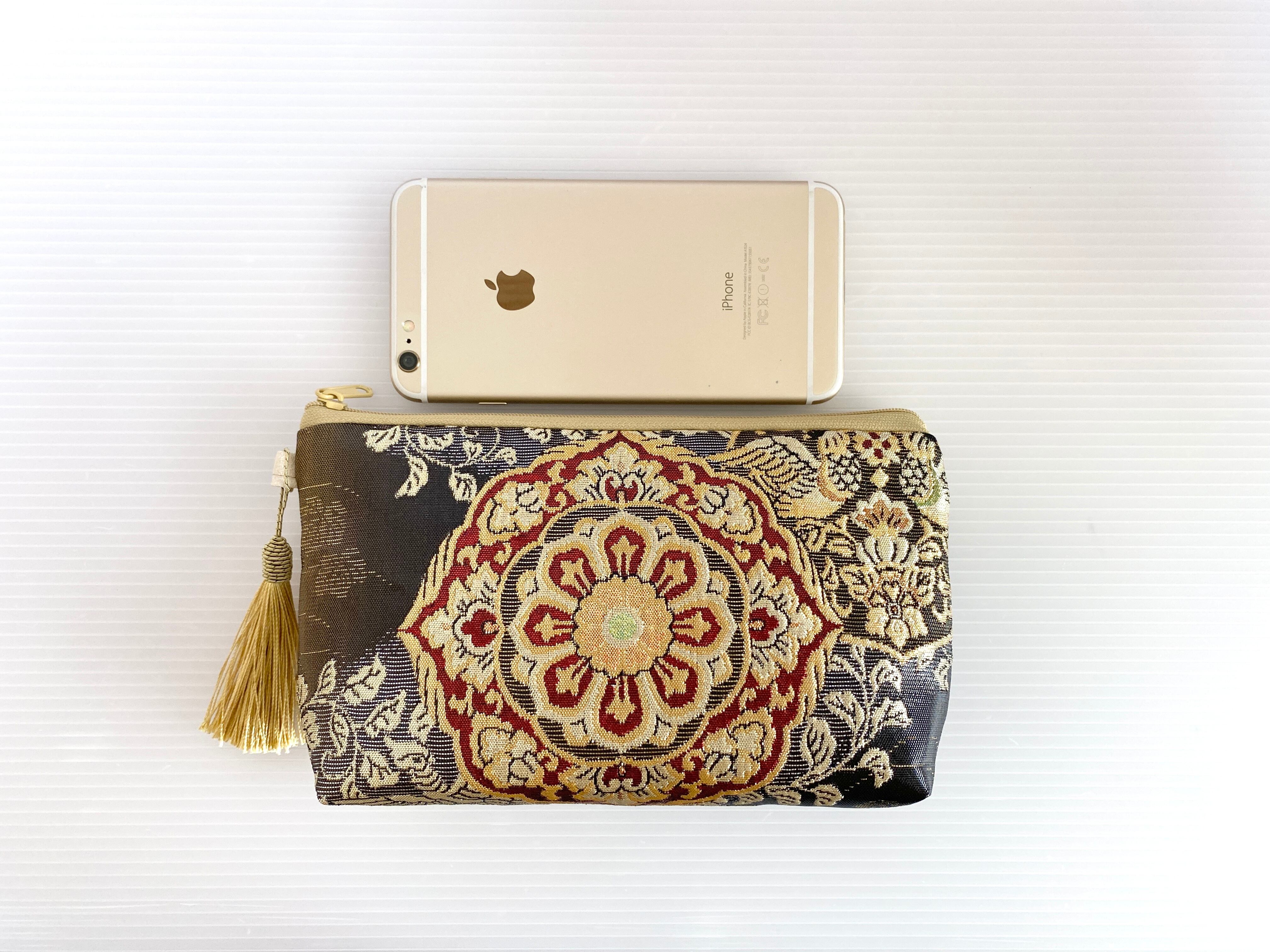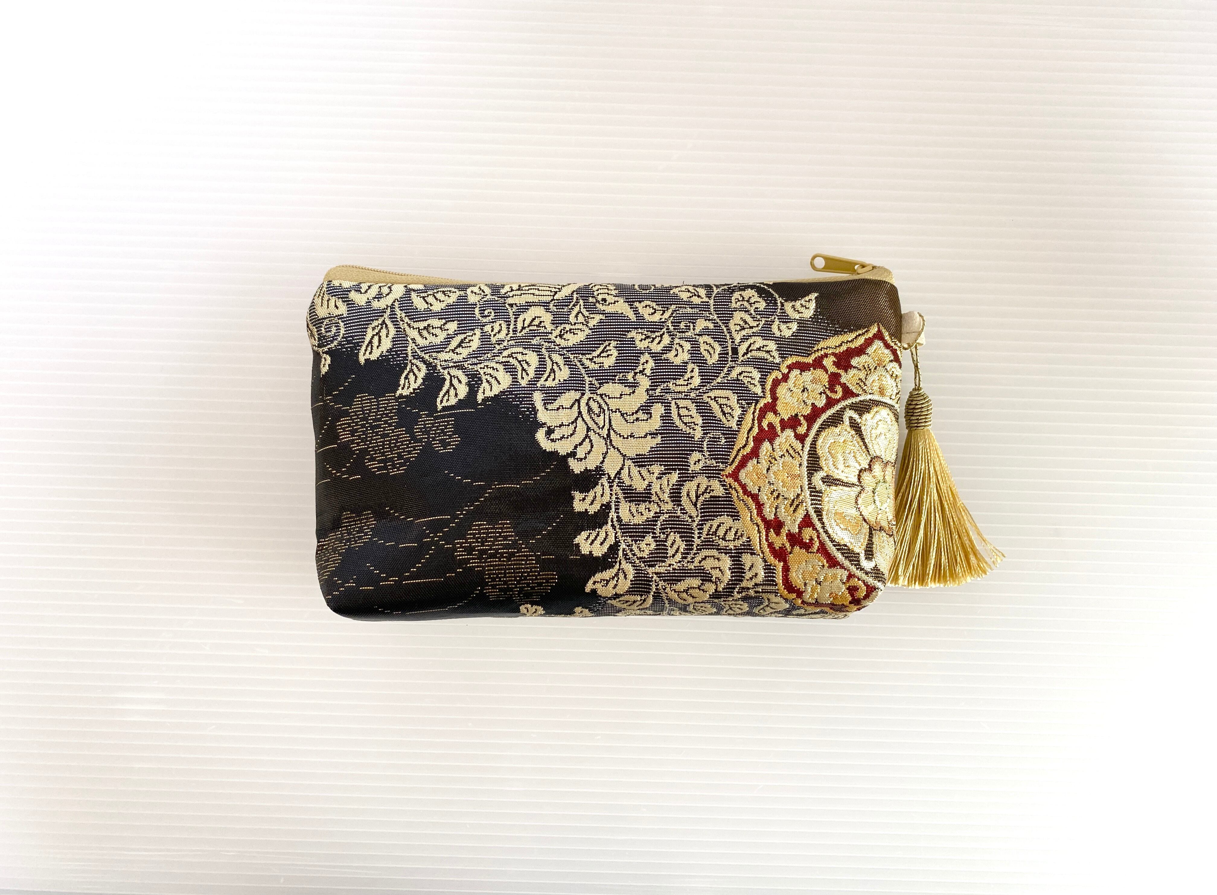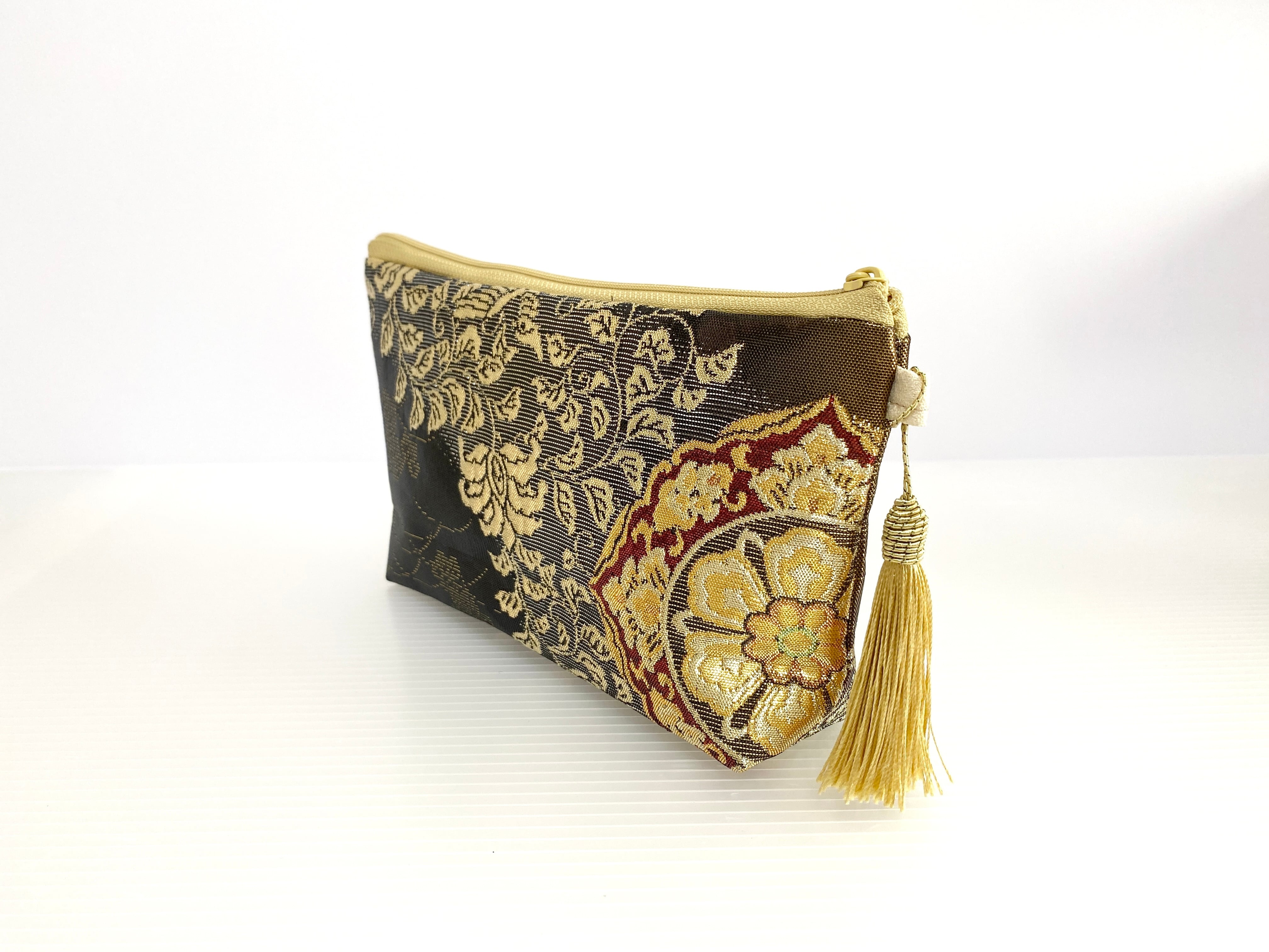 日本の古着物帯をリメイクして作製したポーチでハンドメイド品です