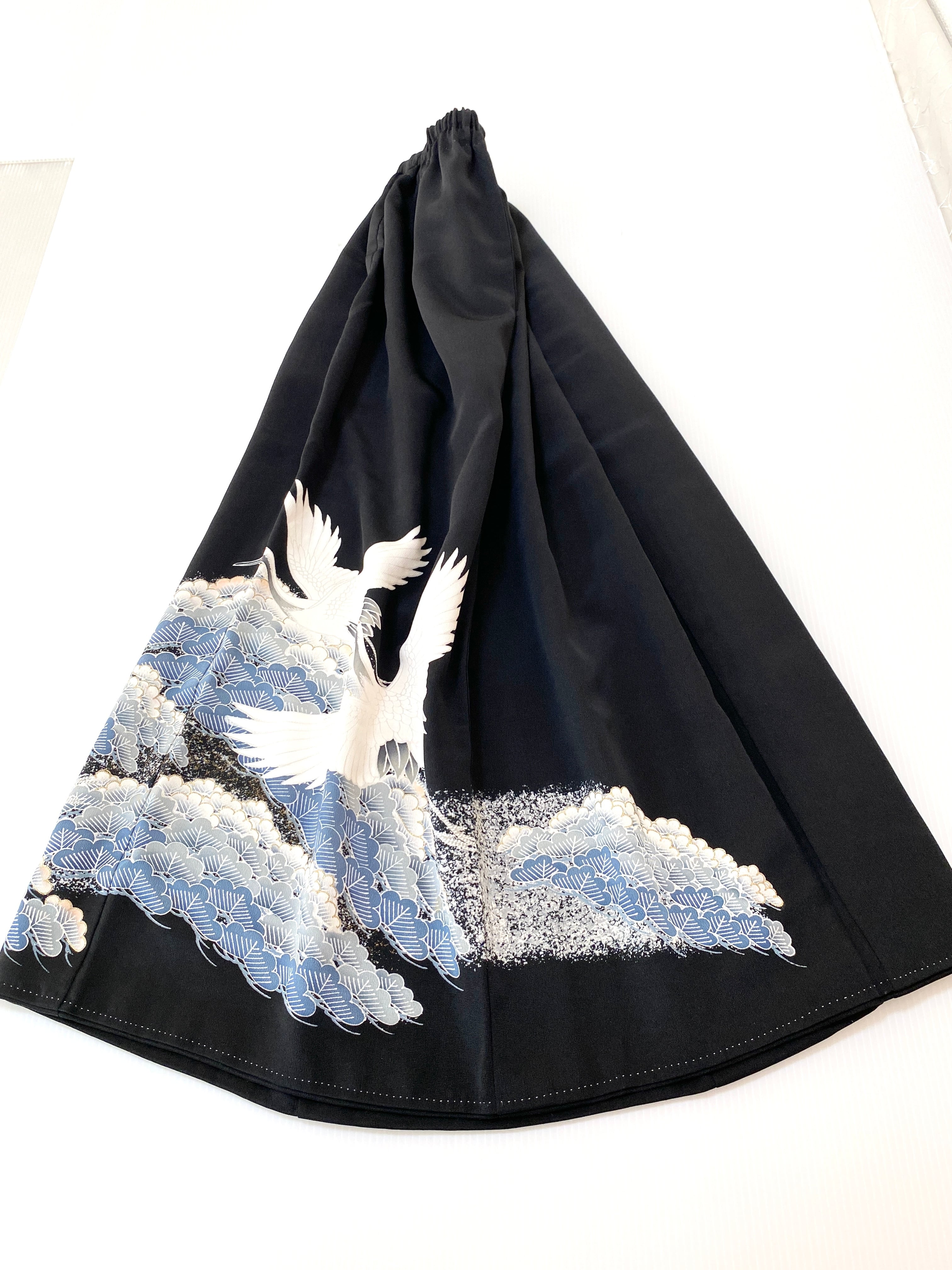 大人可愛いセレブ着物スカートフリーサイズ黒留袖着物リメイクウエストゴムロングスカート