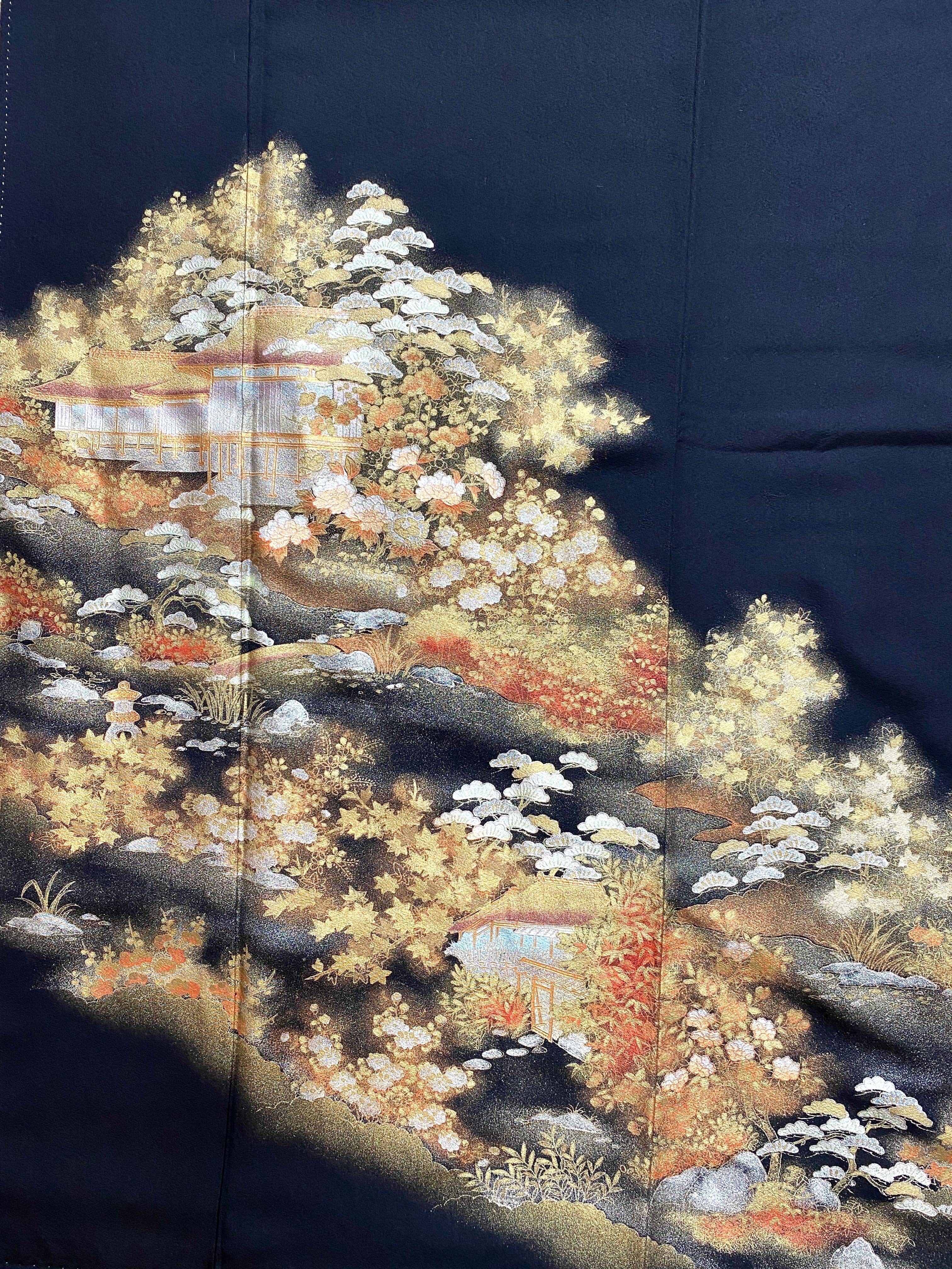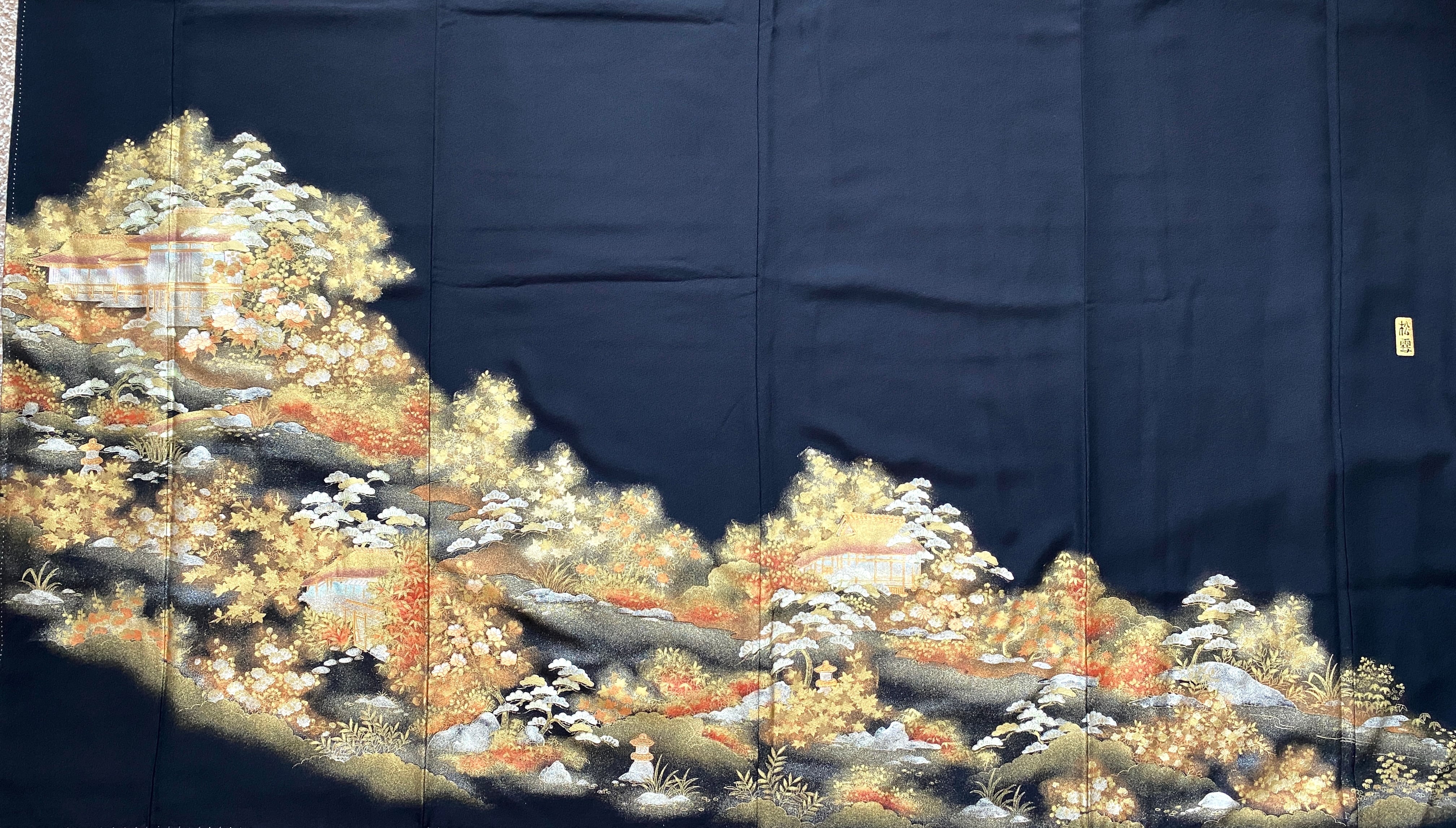 大人可愛いセレブ着物スカートフリーサイズ黒留袖着物リメイクウエストゴムロングスカート