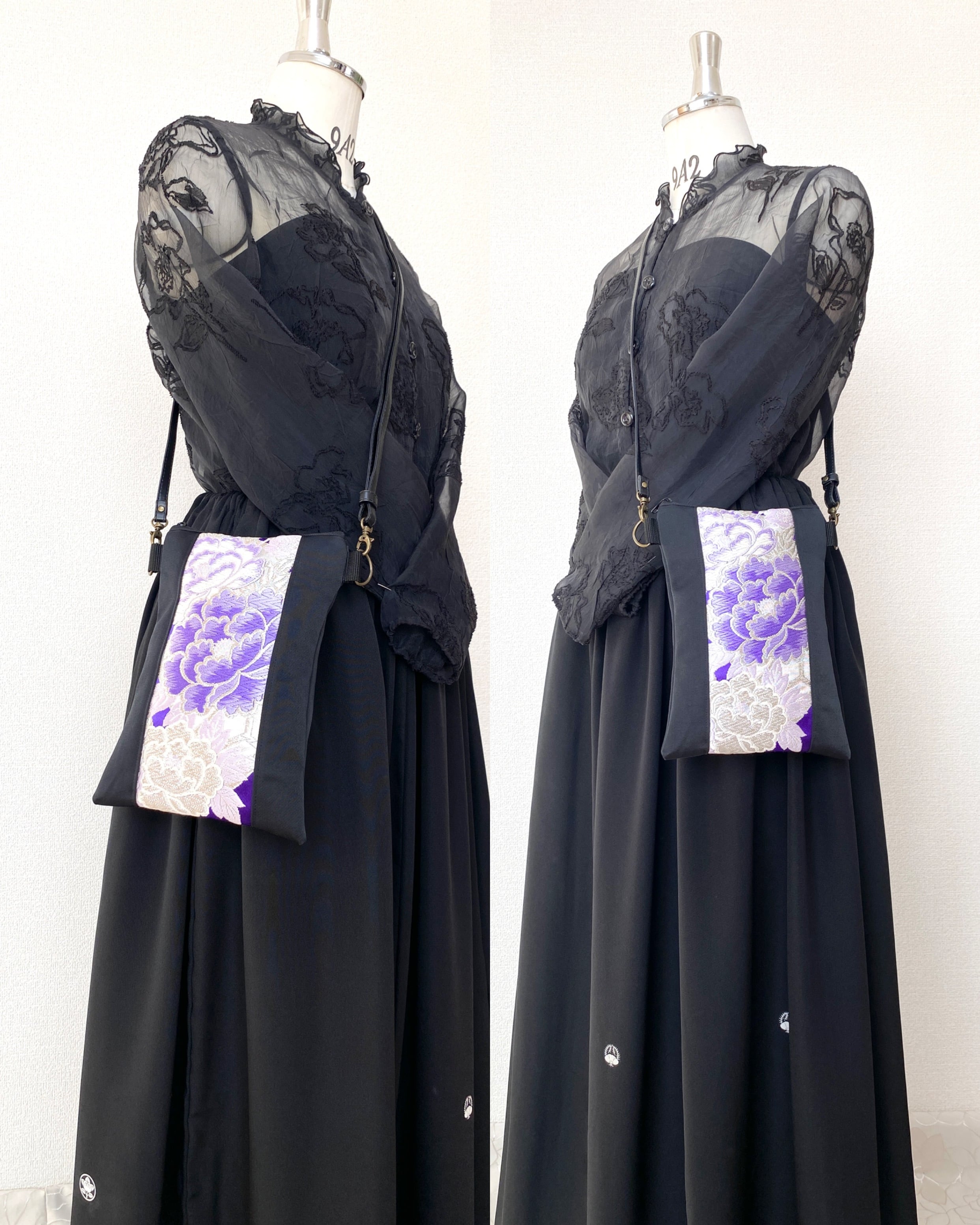 大人可愛いサコッシュバッグ帯リメイクサコッシュバッグ着物リメイクバッグ スマホショルダースマホバッグ 帯リメイクバッグ ハンドメイド送料込みNO.5730