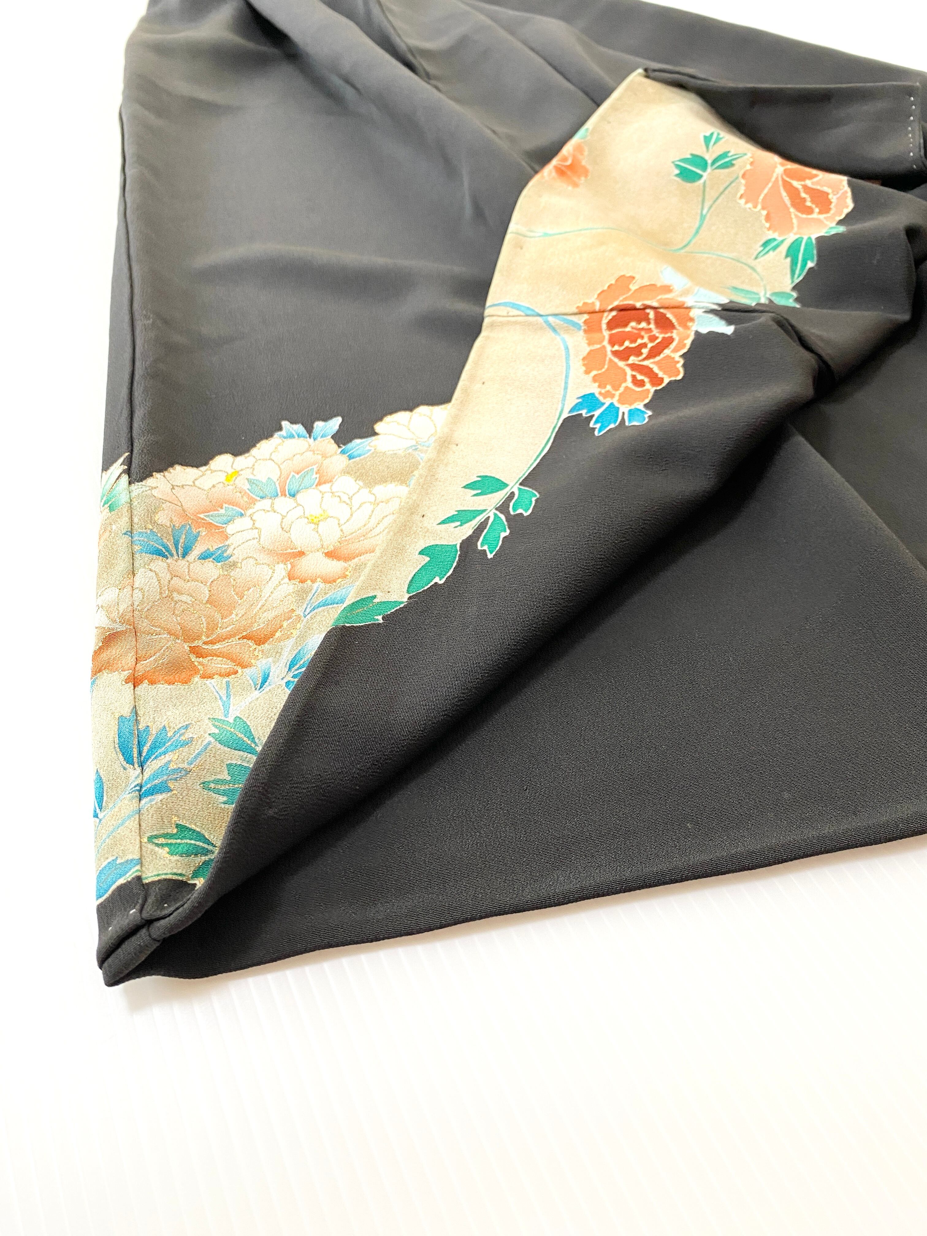 大人可愛いセレブ着物スカートフリーサイズ黒留袖着物リメイクウエストゴムロングスカート
