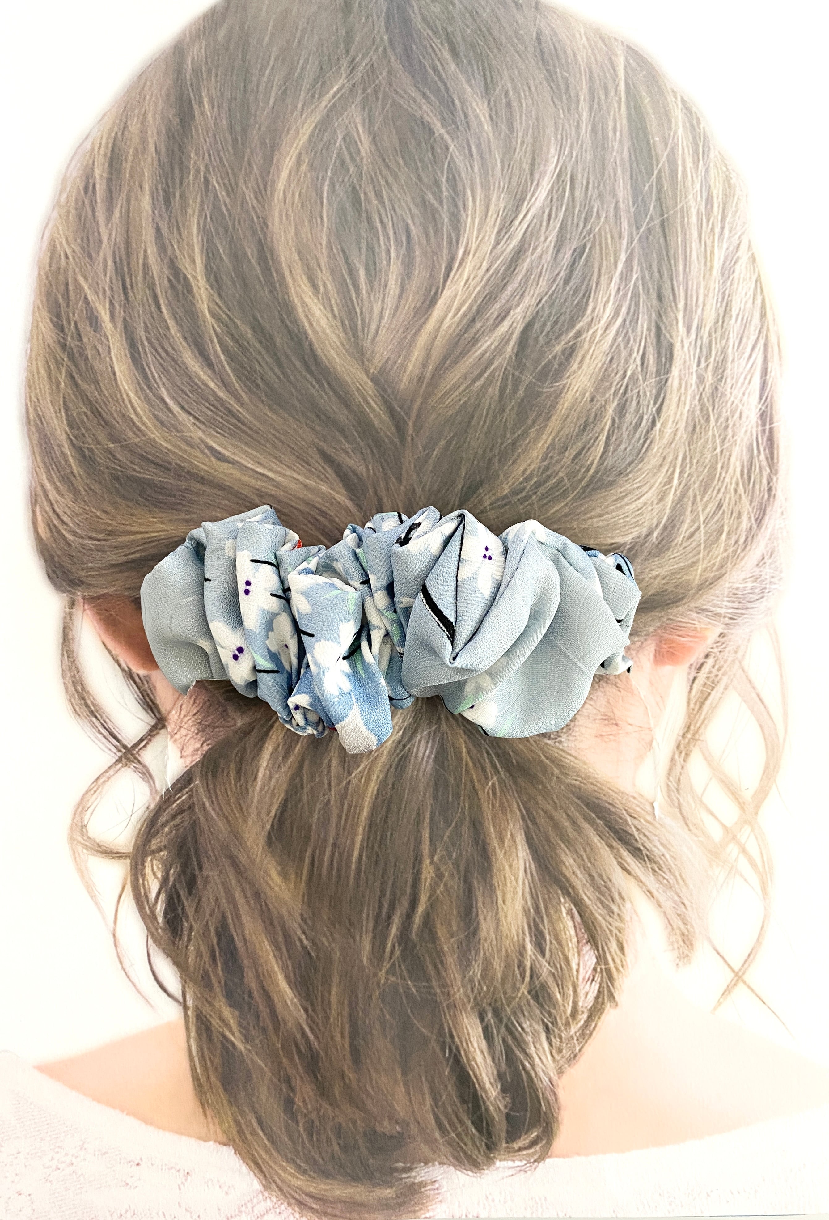 着物布生地なので柔らかで薄い布生地な為触り心地が良く滑らかで髪結びの装着がとても良いシュシュヘアゴムです