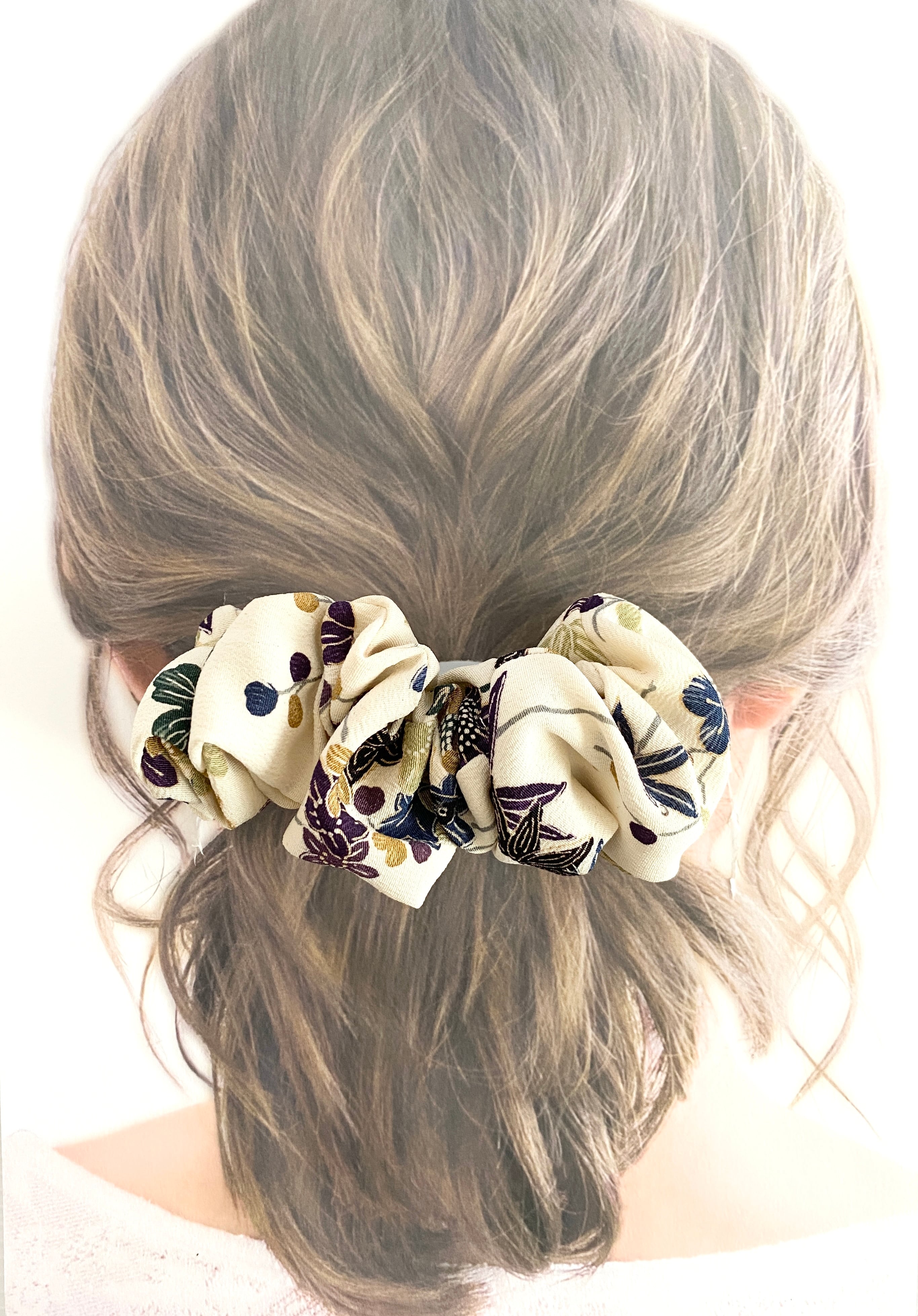着物をリメイクし作製したシュシュヘアゴムです