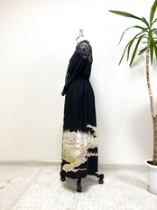 大人可愛いセレブ着物スカートフリーサイズ黒留袖着物リメイクウエストゴムロングスカート