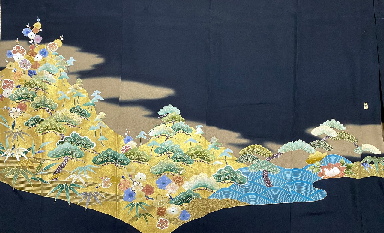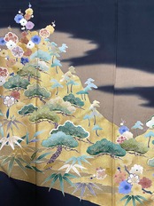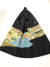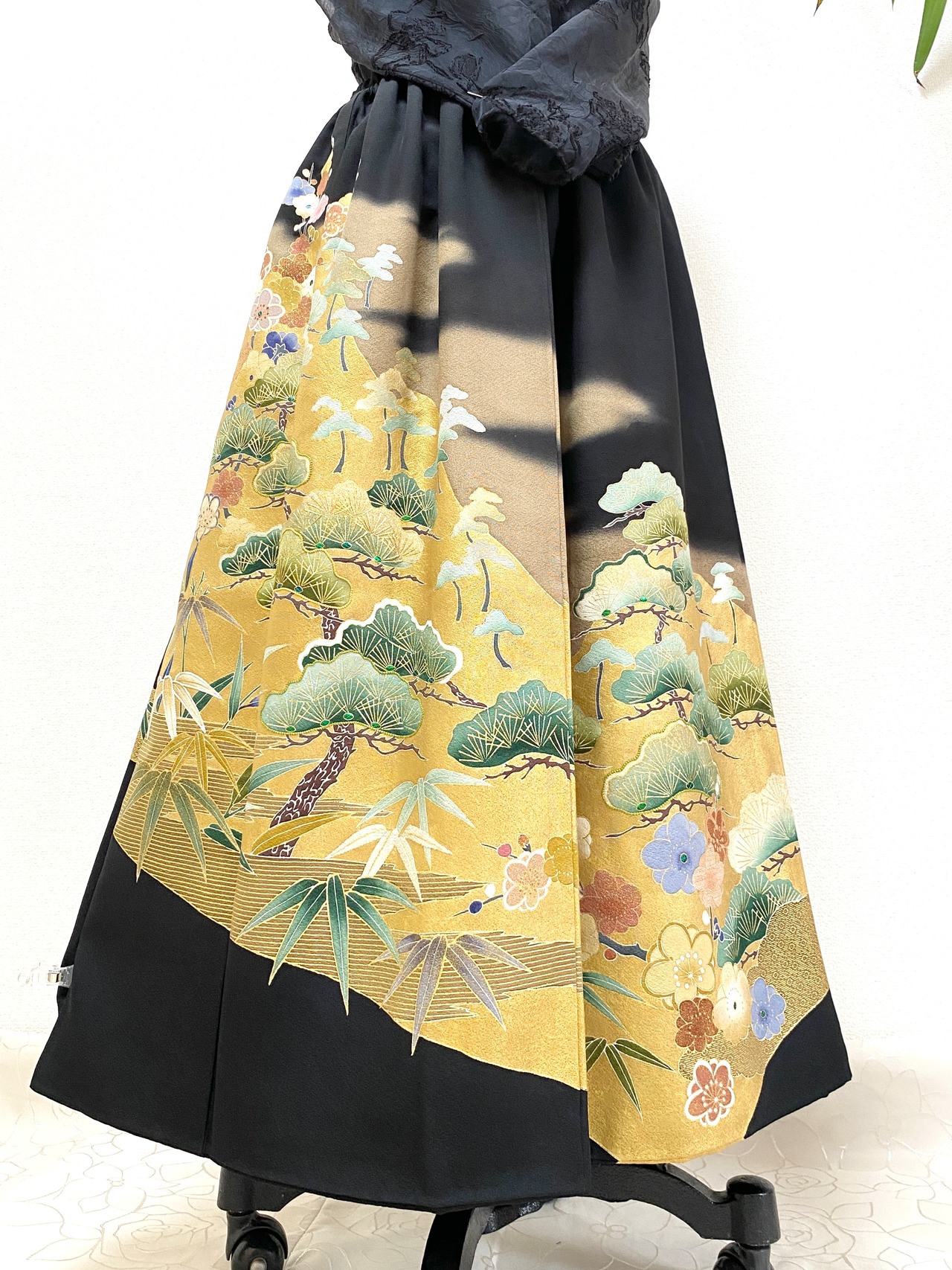 大人可愛いセレブ着物スカートフリーサイズ黒留袖着物リメイクウエストゴムロングスカート