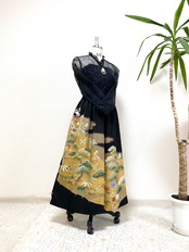 黒留袖着物をリメイクして作製したウエストゴムロングドレススカートフリーサイズです
