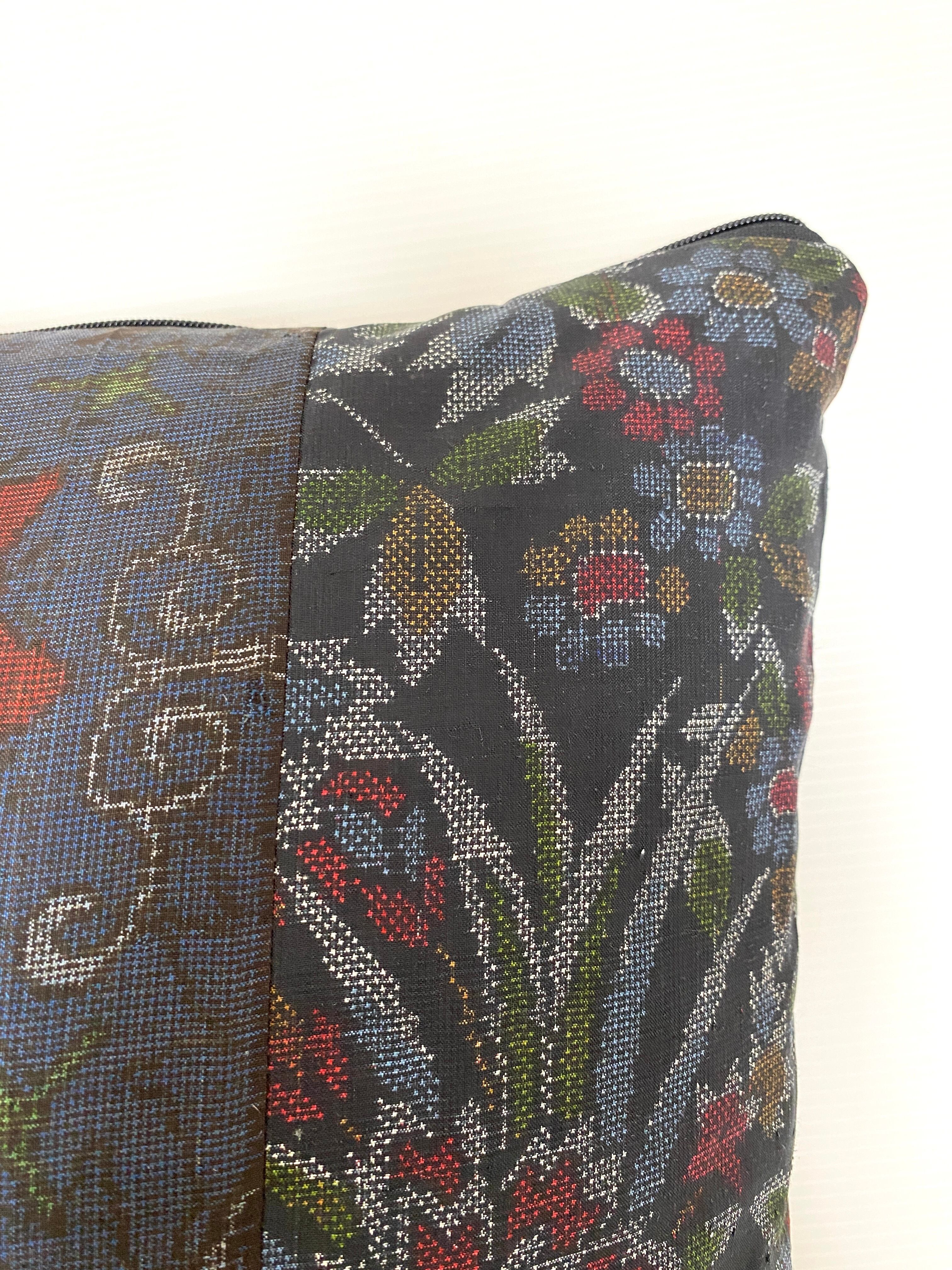 大島の古着物をリメイクして作製したクッションカバー座布団カバーです
