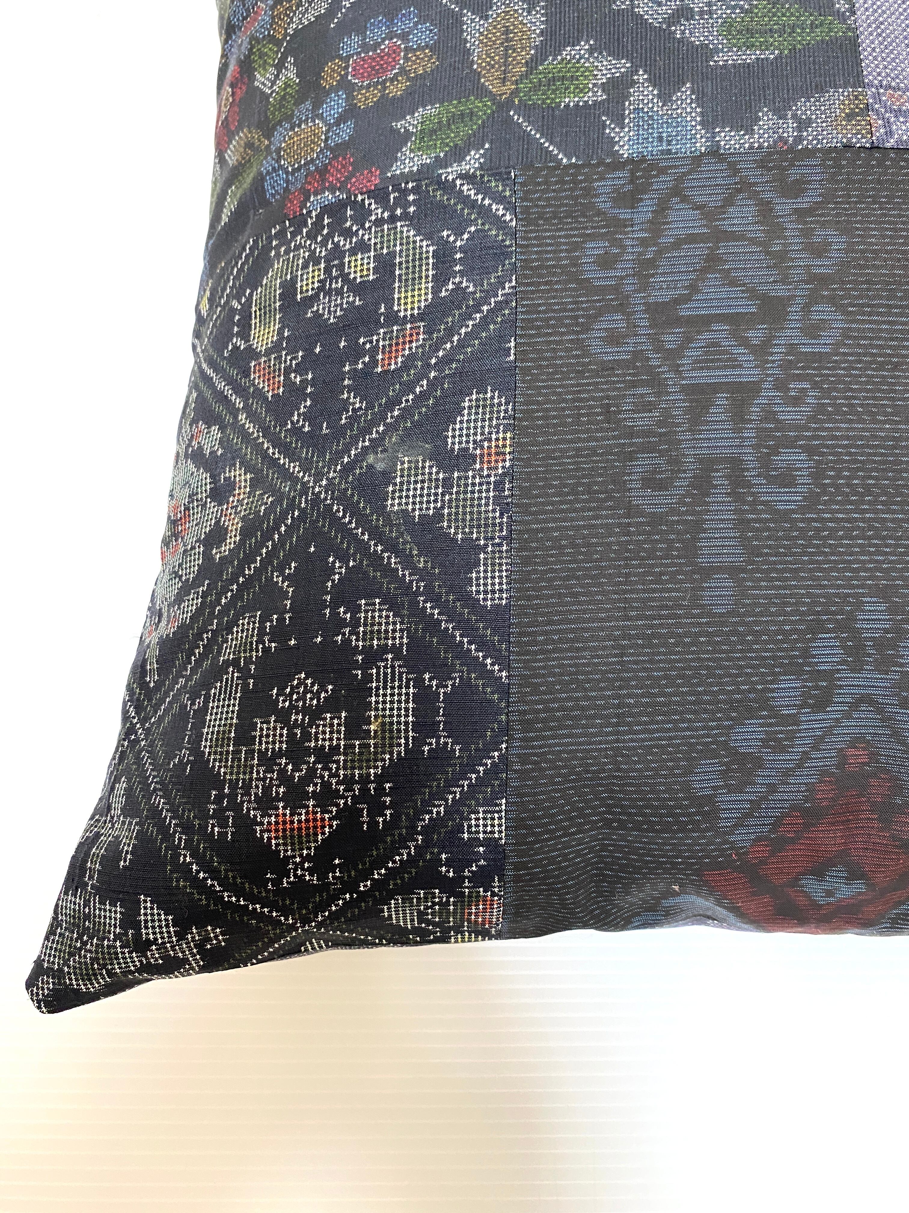 大島の古着物をリメイクして作製したクッションカバー座布団カバーです