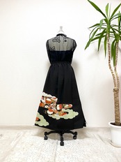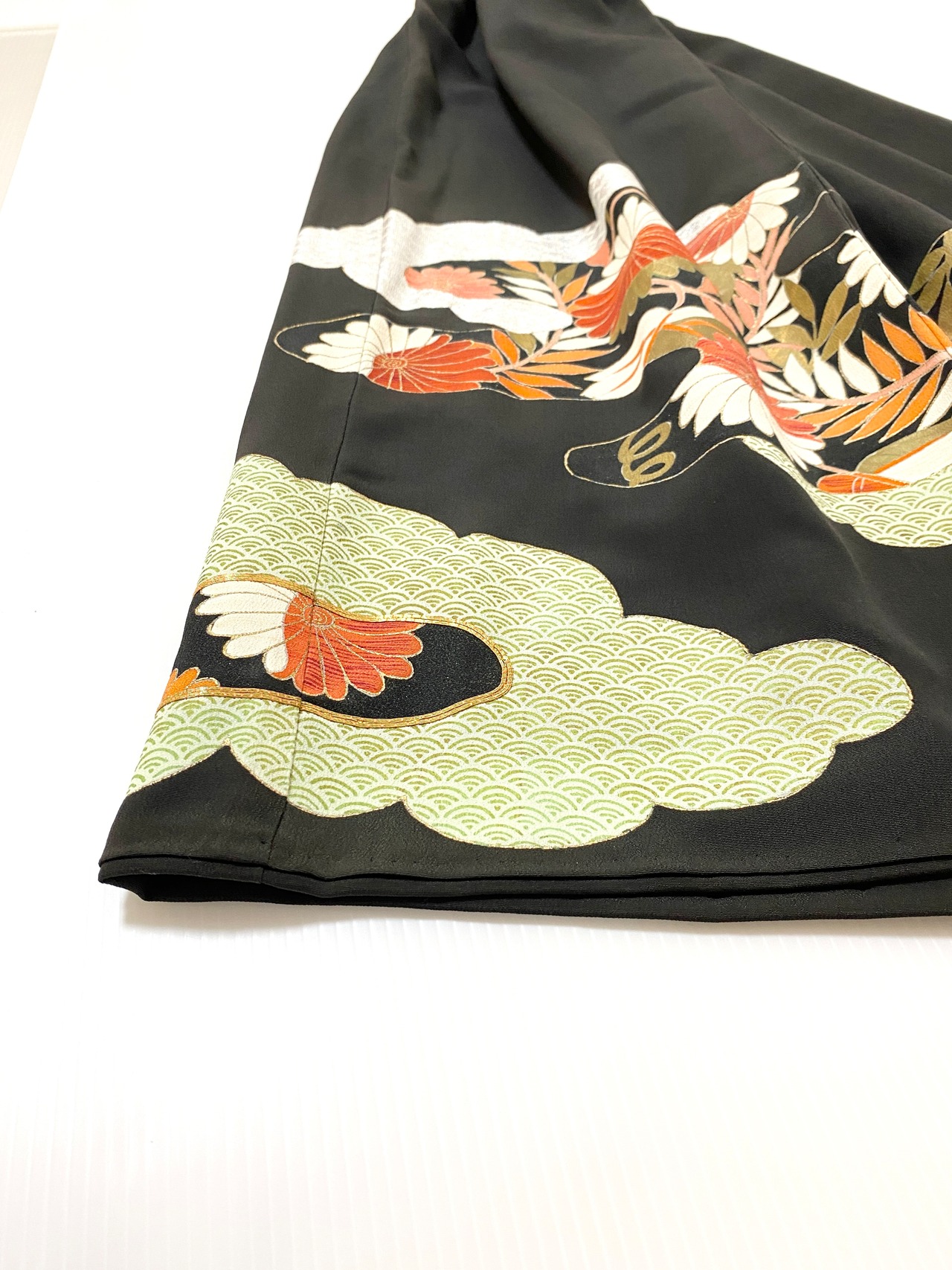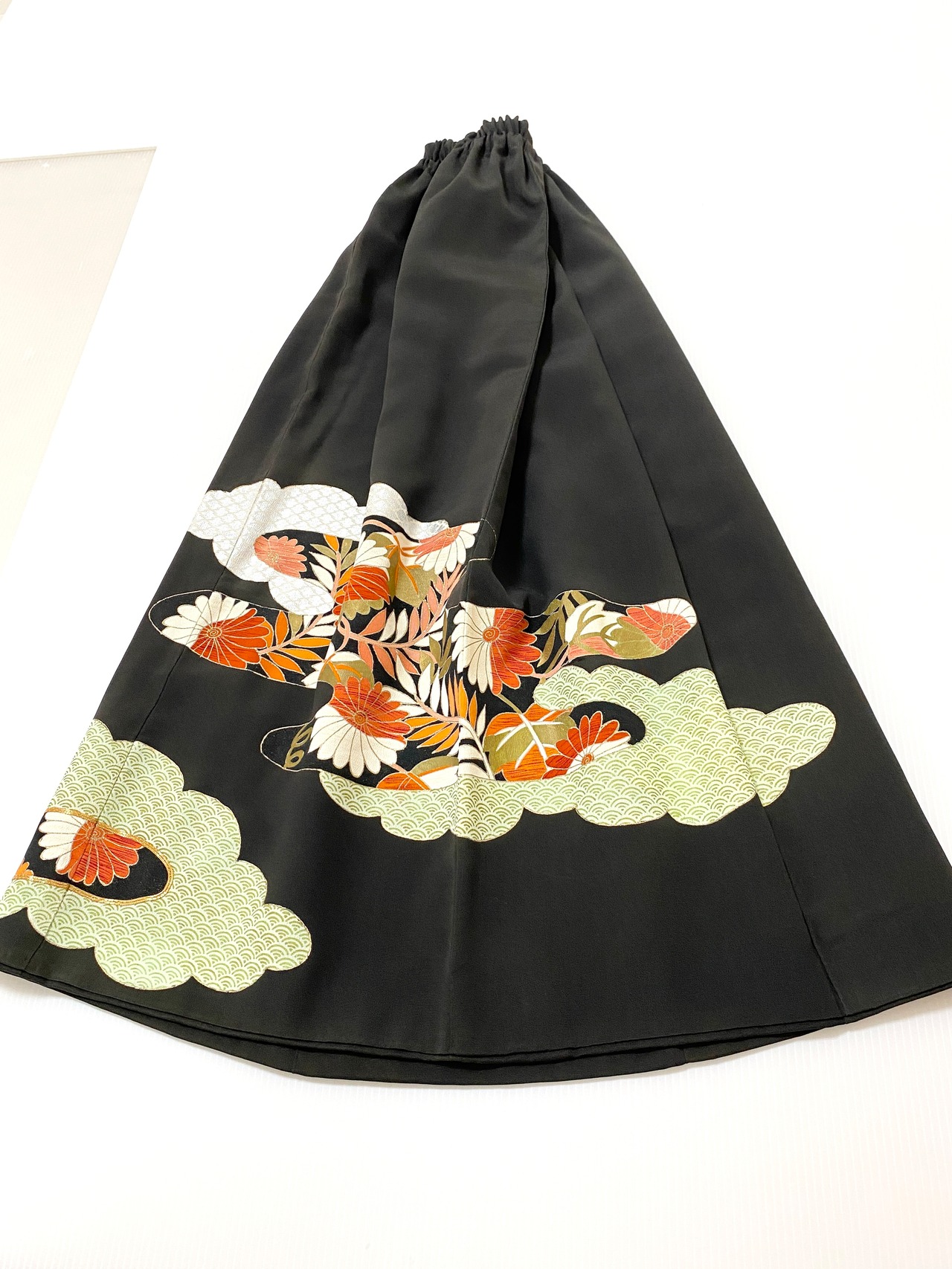 大人可愛いセレブ着物スカートフリーサイズ黒留袖着物リメイクウエストゴムロングスカート