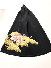 黒留袖着物をリメイクして作製したウエストゴムロングドレススカートフリーサイズです
