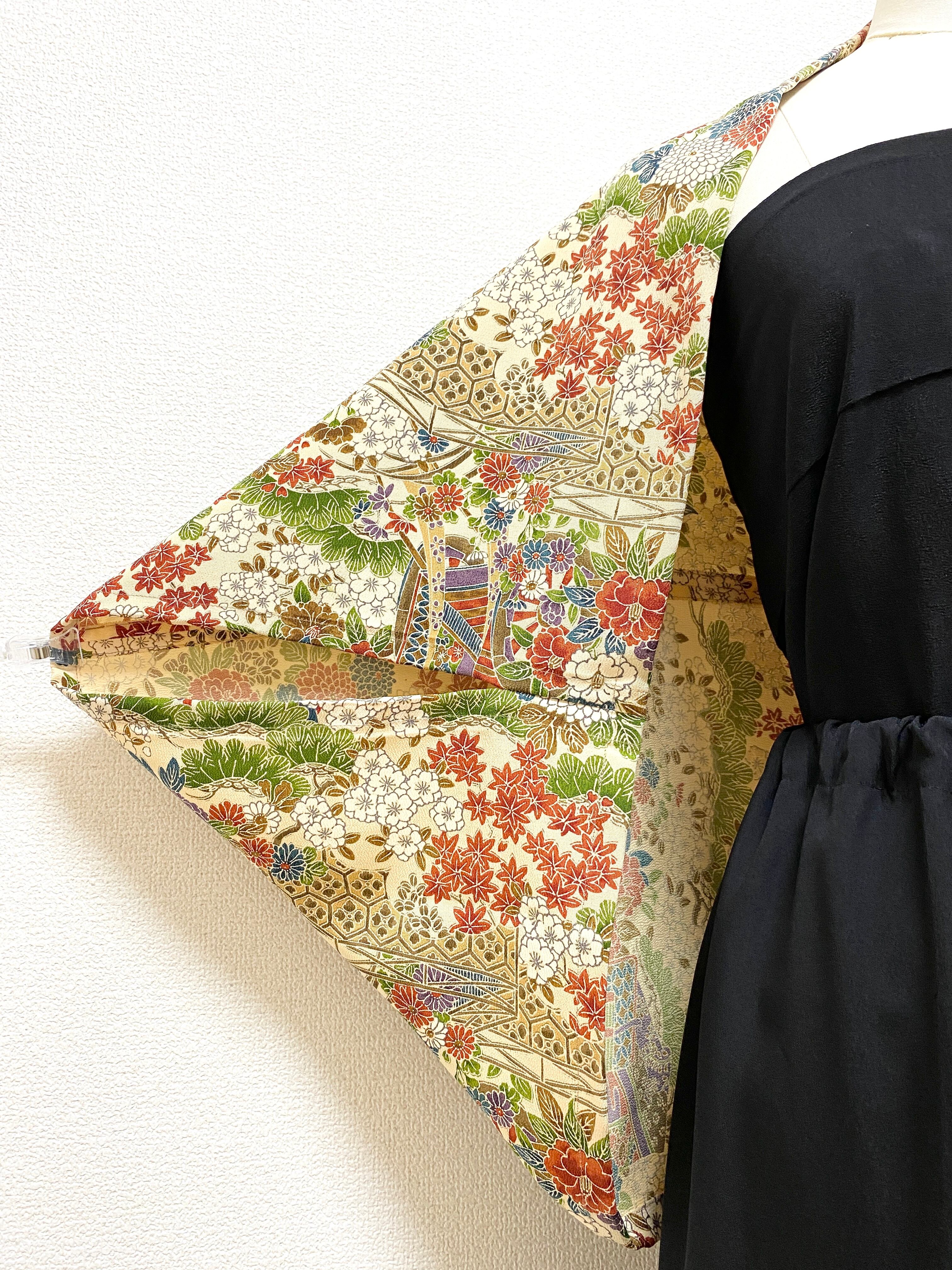商品はハンドメイド職人が1点1点丁寧に仕上げております。生地の検品は厳選し注意して行っておりますが古帯・古着物をリメイクという特性上、生地にごく多少の難(糸や生地の擦れ折りシワ針穴など等)がある物もございます。ですが販売するにあたりよほどのシミや糸ほつれ・臭いのあるものは使用しておりませんのでご安心頂き着物帯リメイクをご理解・ご了承のうえ購入して頂きますようお願い致します