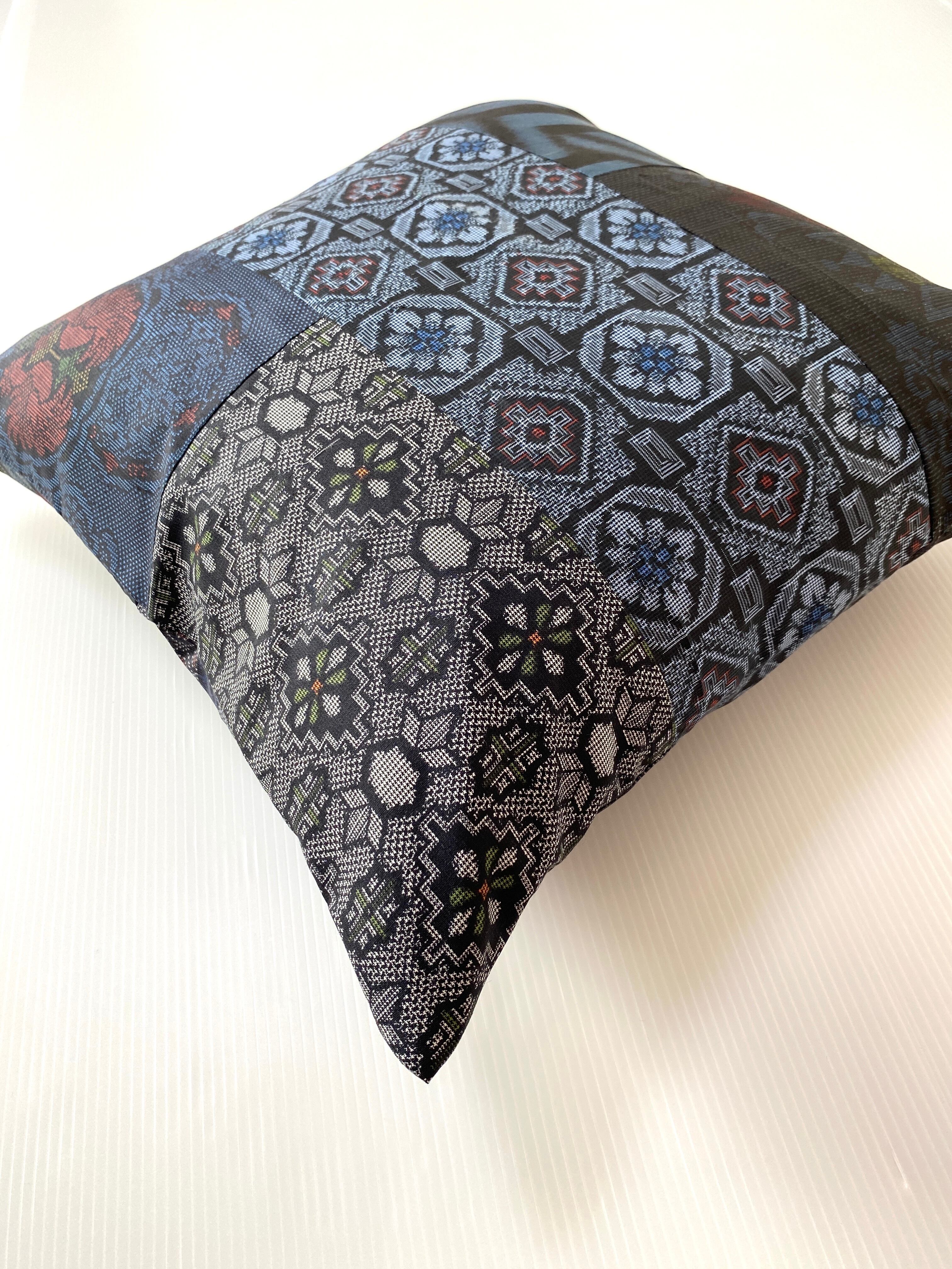 大島の古着物をリメイクして作製したクッションカバー座布団カバーです