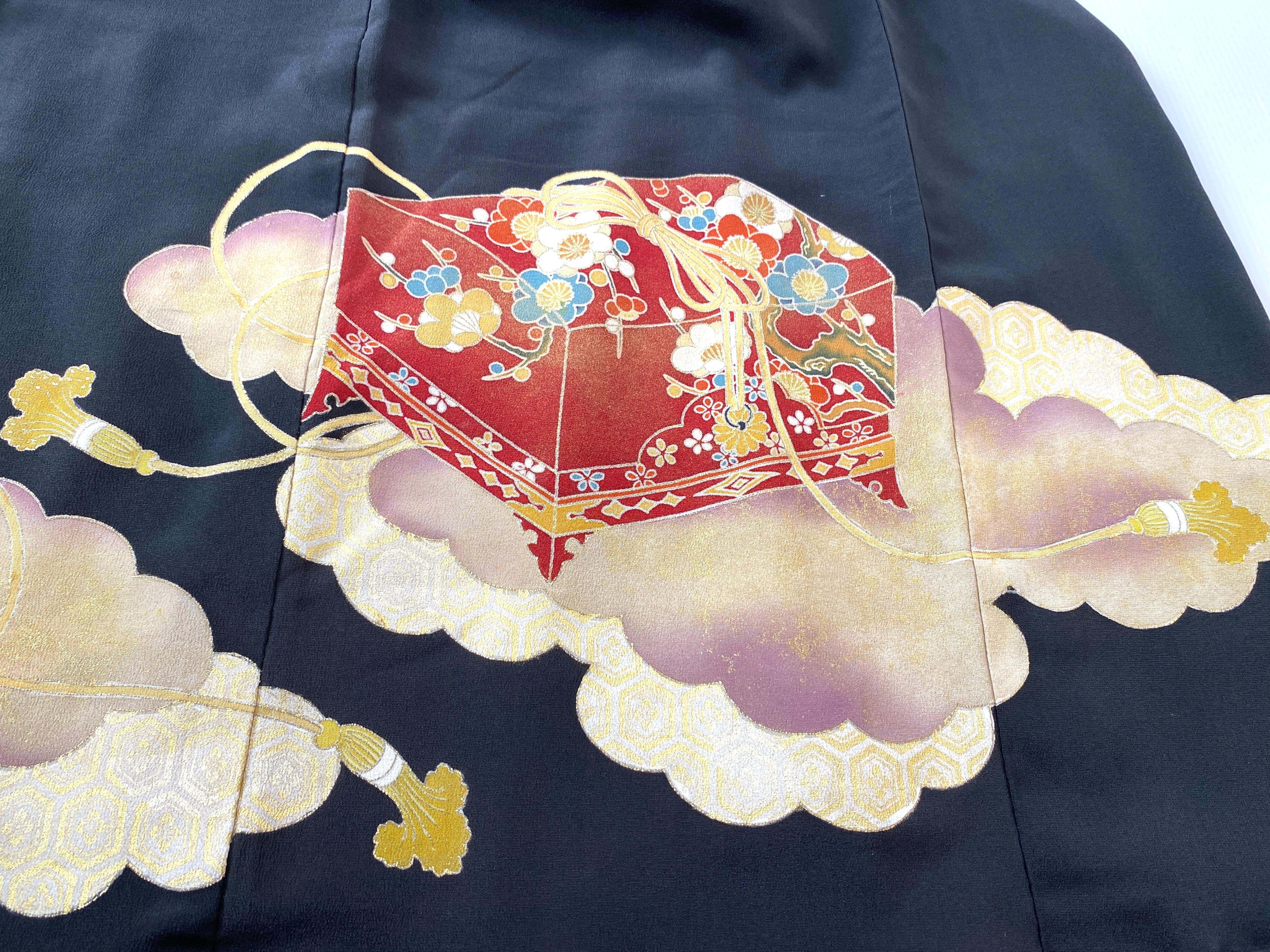 大人可愛いセレブ着物スカートフリーサイズ黒留袖着物リメイクウエストゴムロングスカート