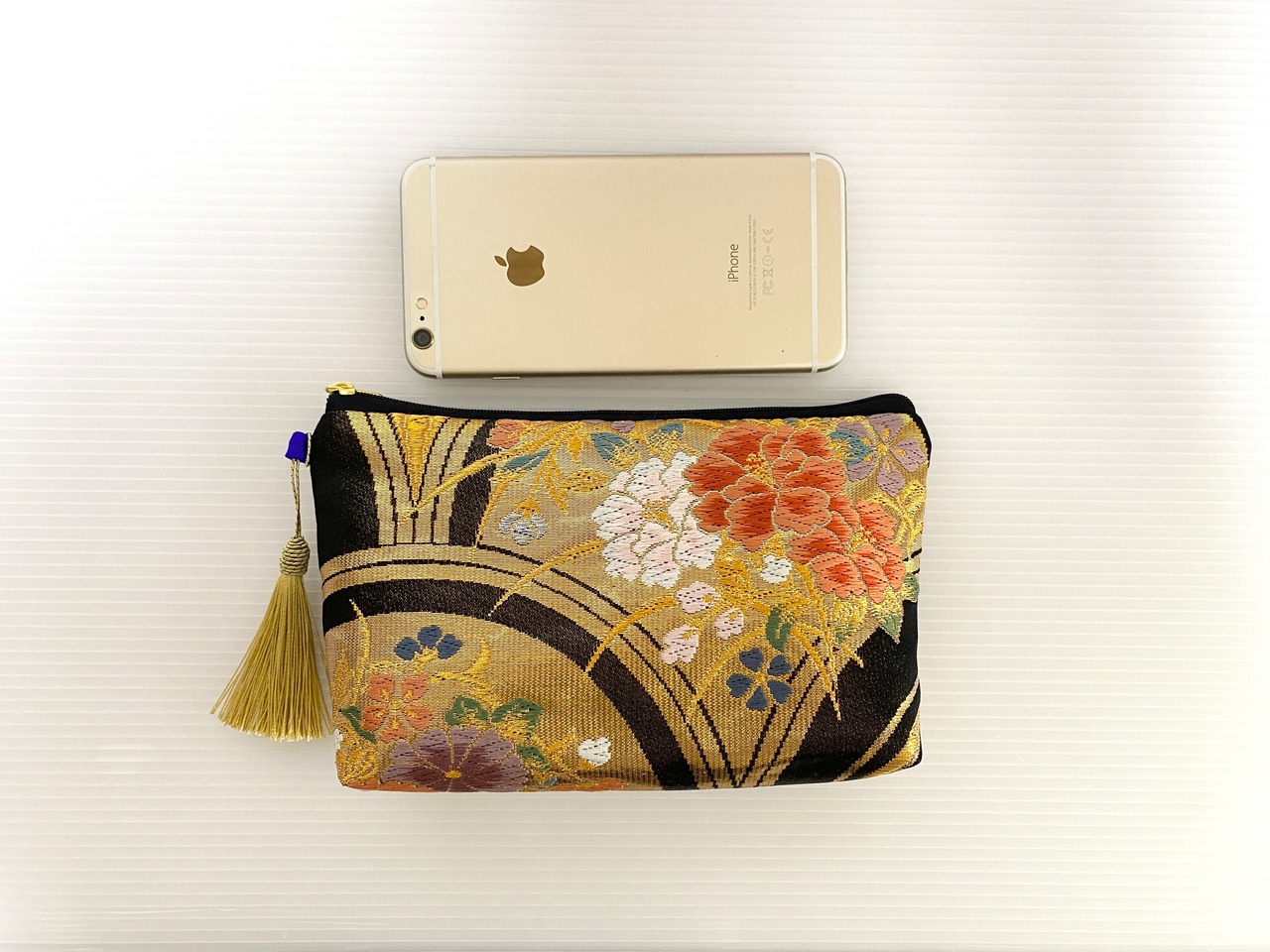 触り心地が滑らかで手にしっくりとくる安心感。絵柄の鮮やかさは日本の着物帯ならではの存在感で素晴らしく華やかな美しさ