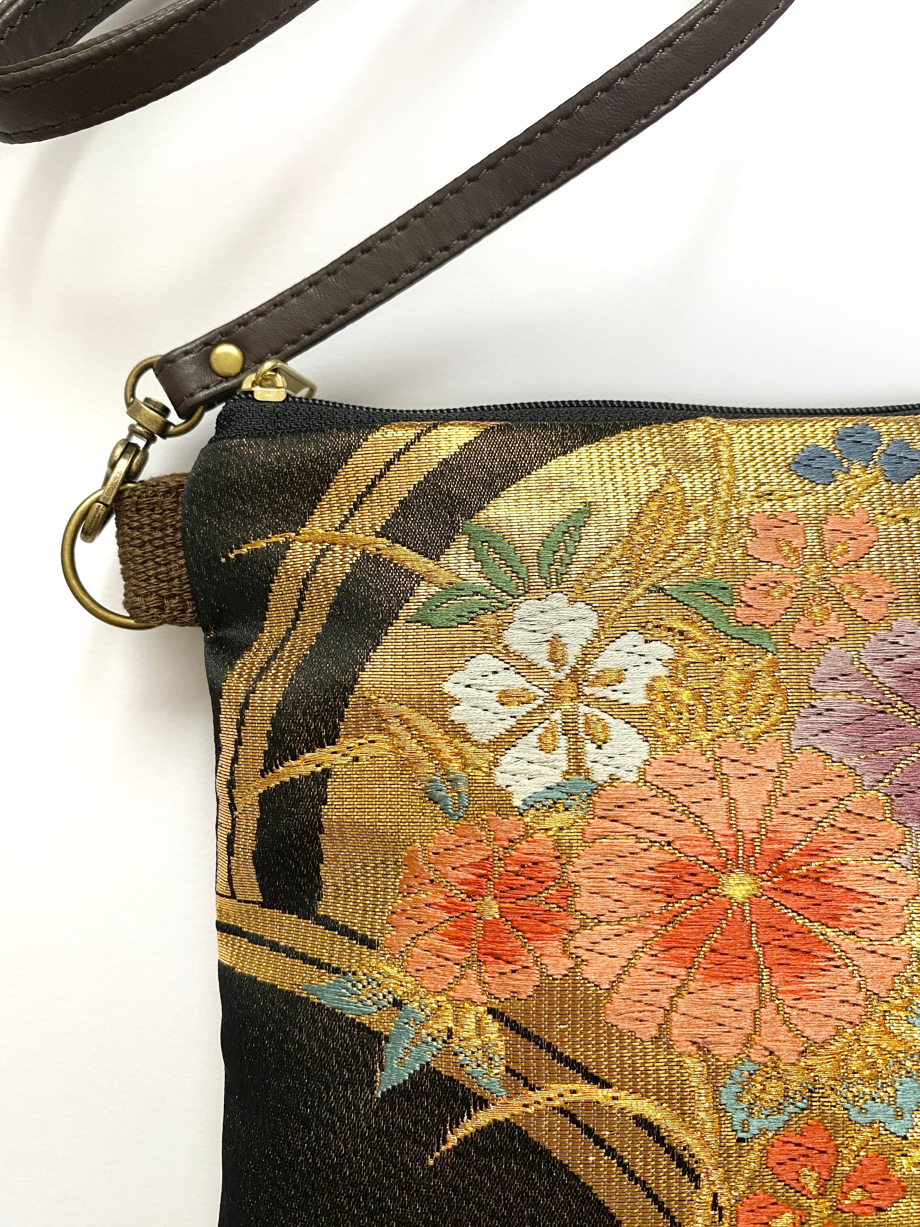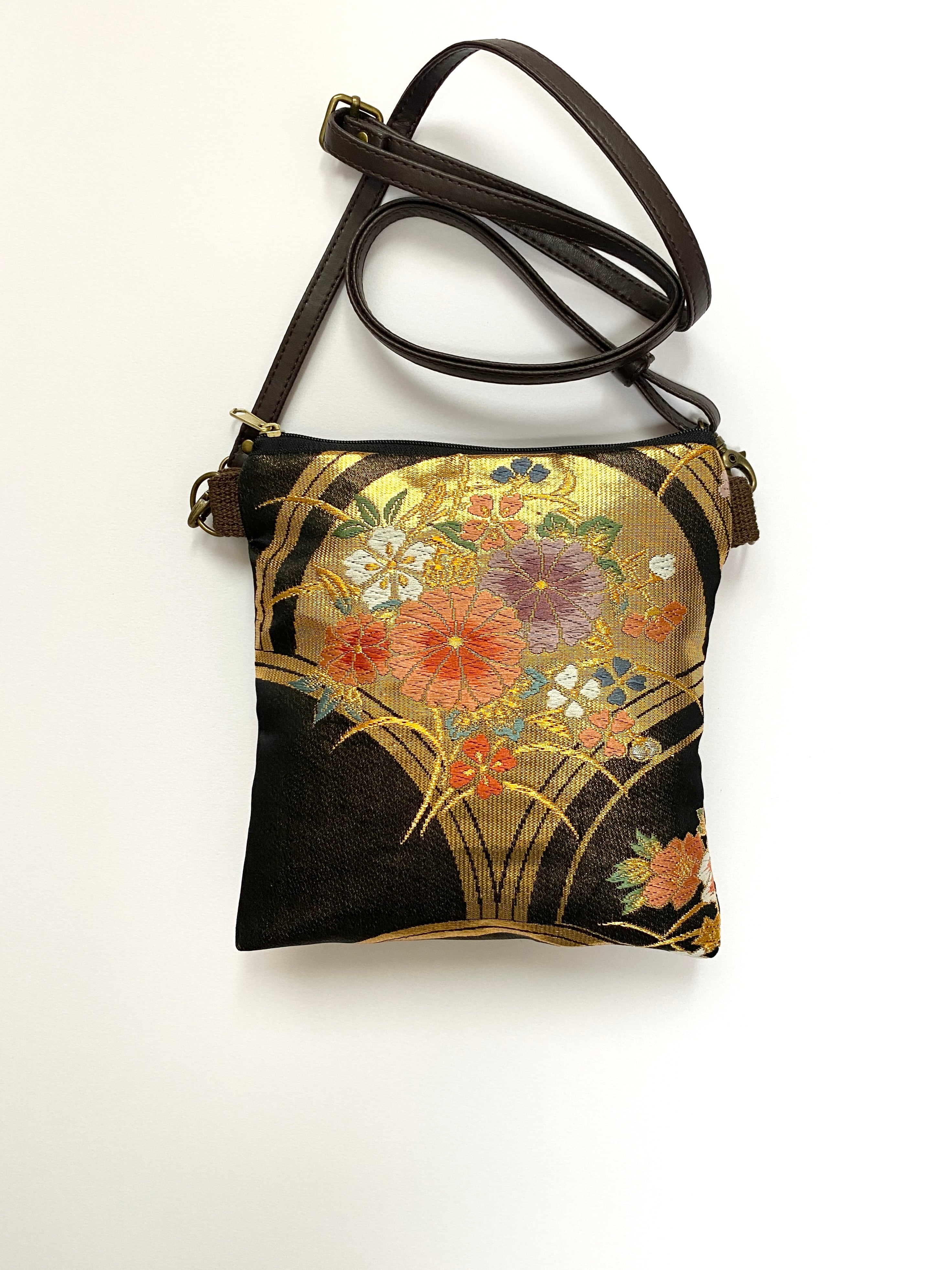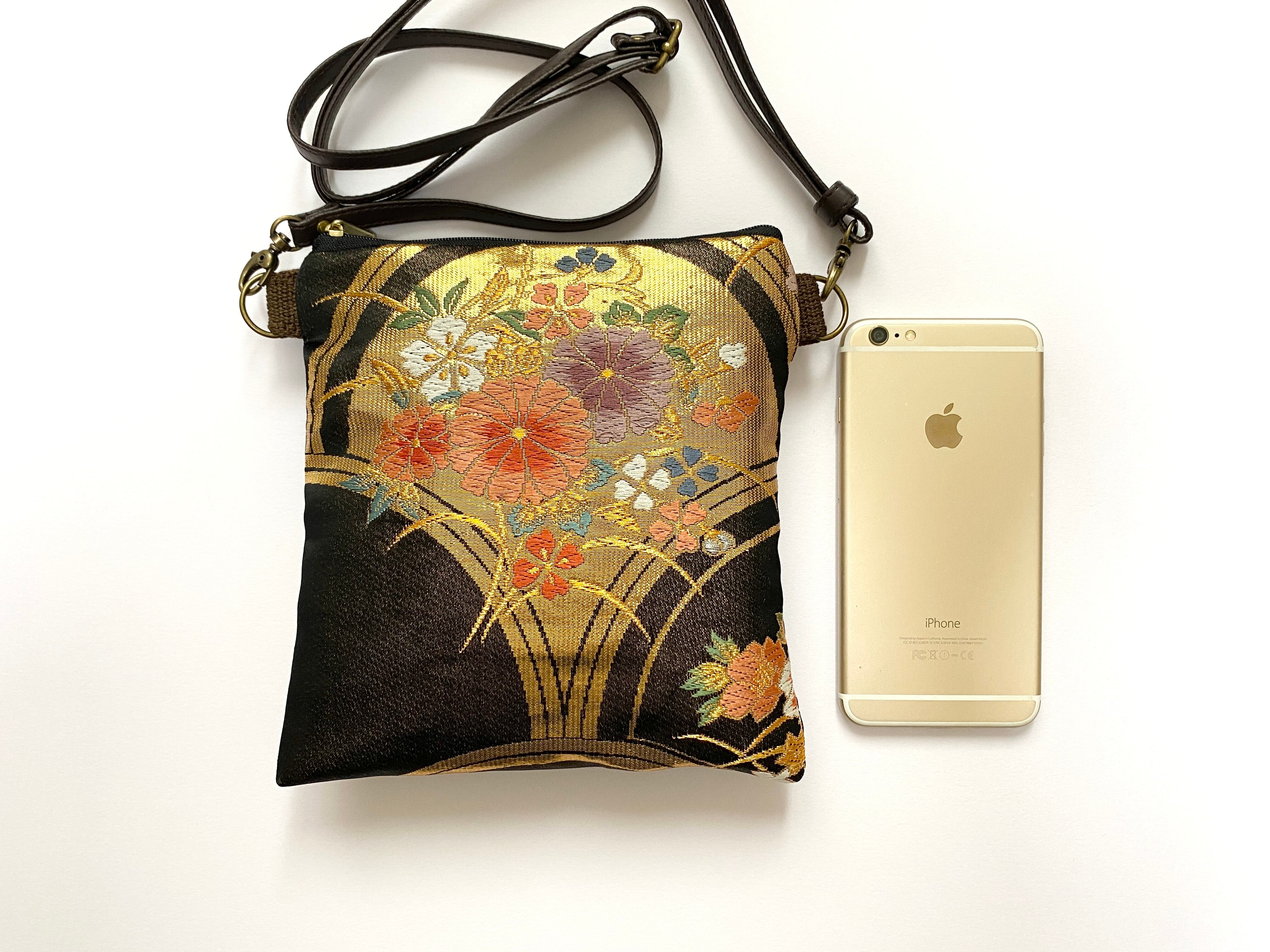 大人可愛いサコッシュバッグ帯リメイクサコッシュバッグ着物リメイクバッグ スマホショルダースマホバッグ 帯リメイクバッグ ハンドメイド送料込みNO.5825