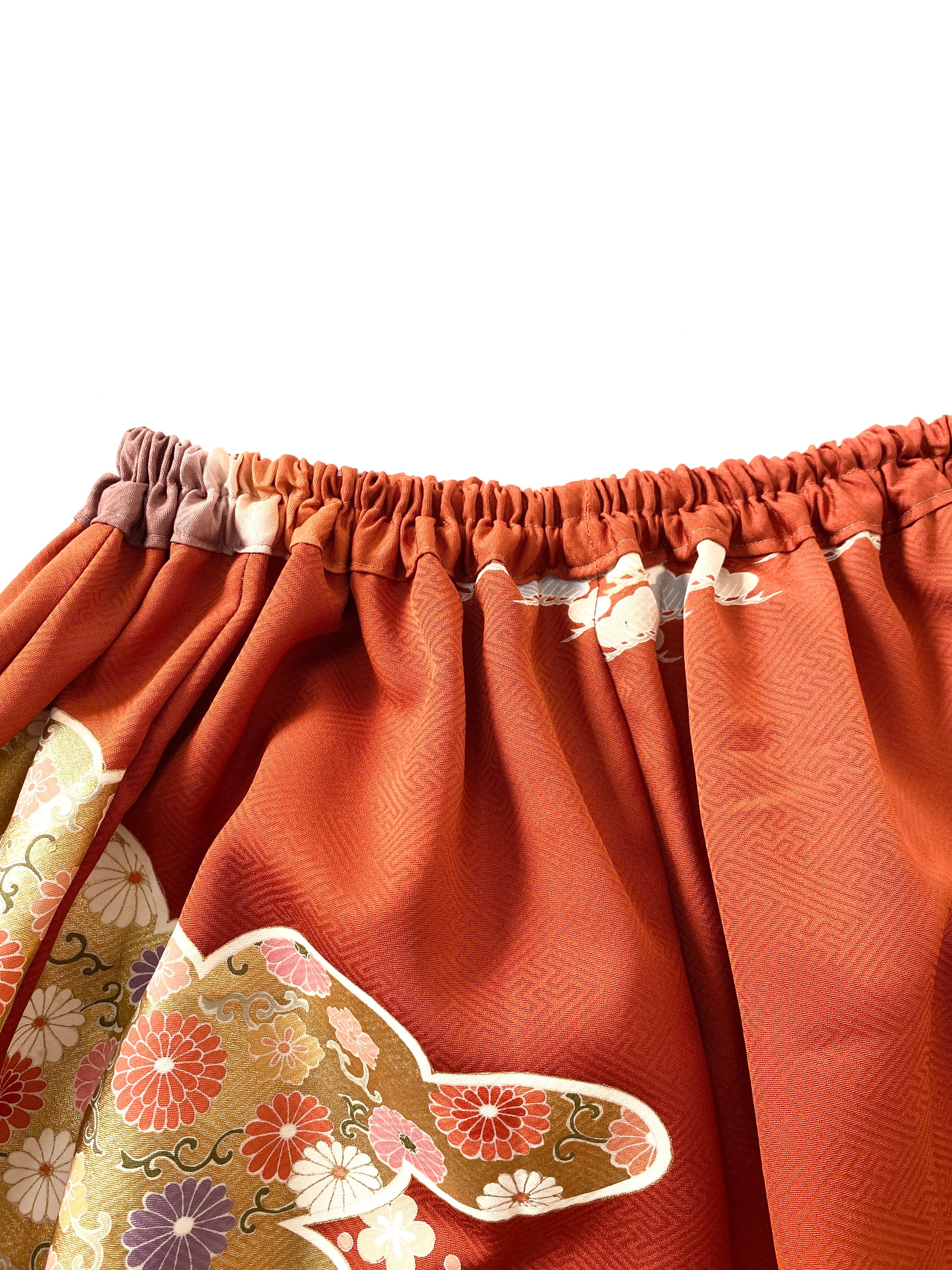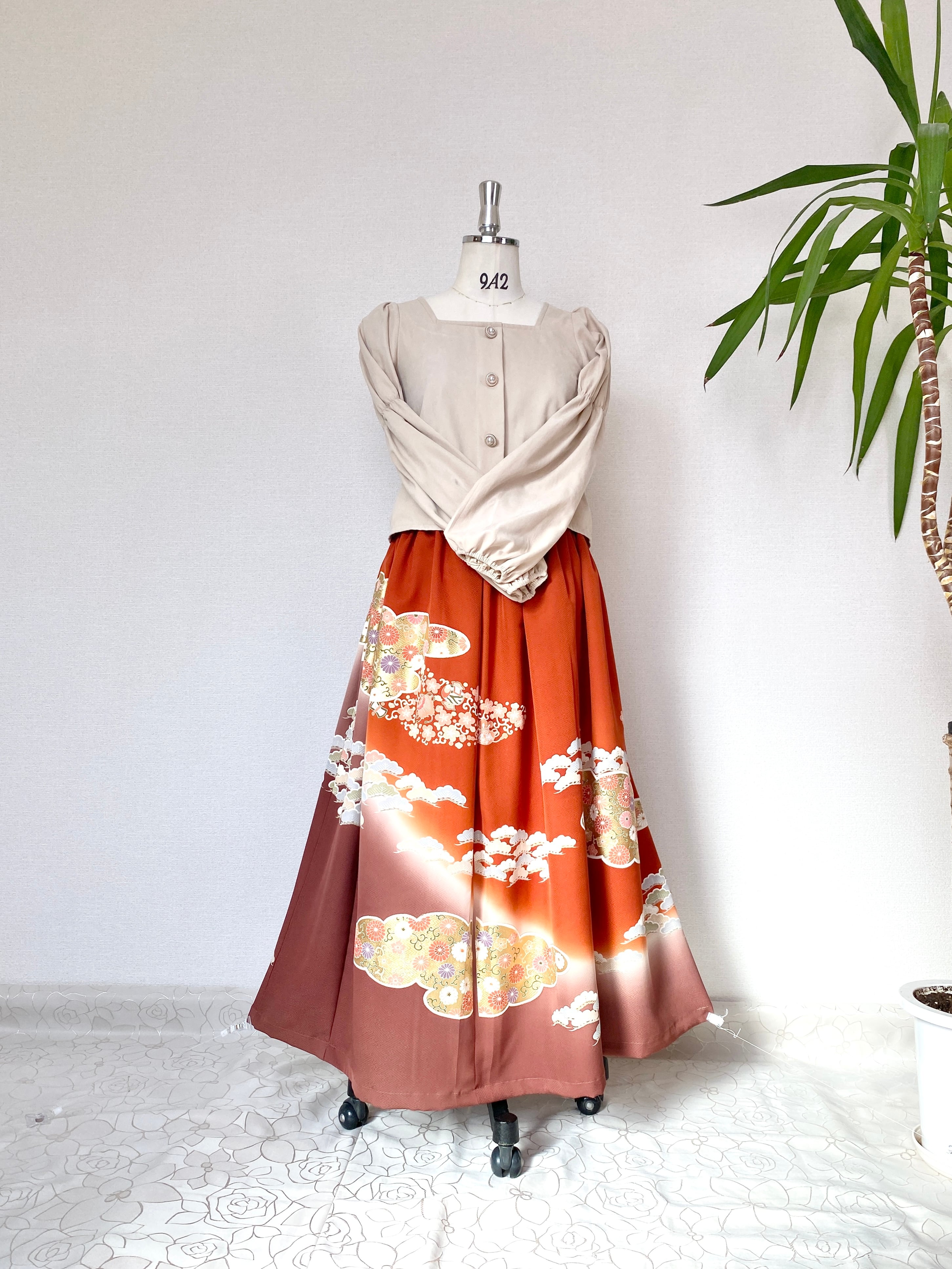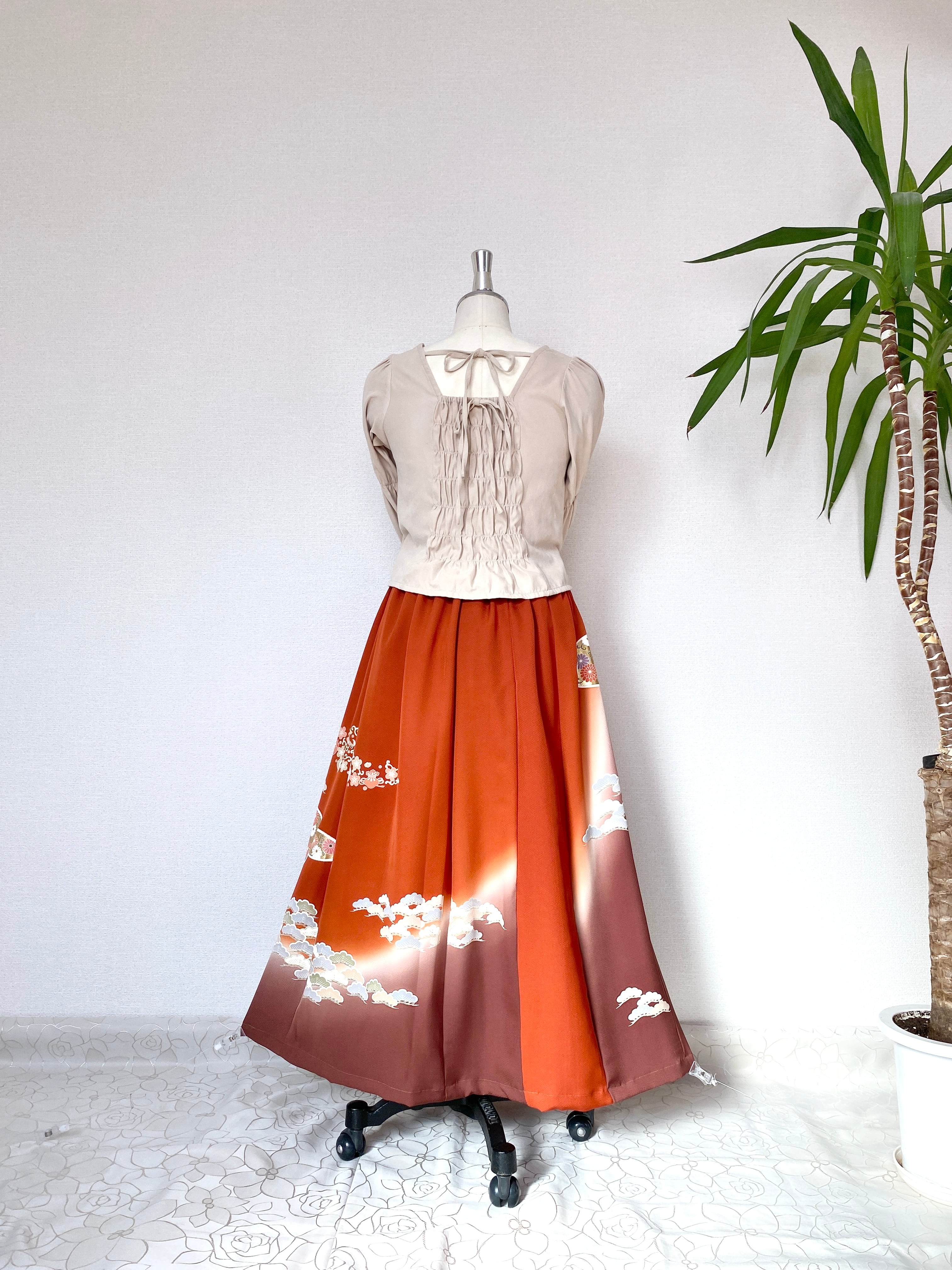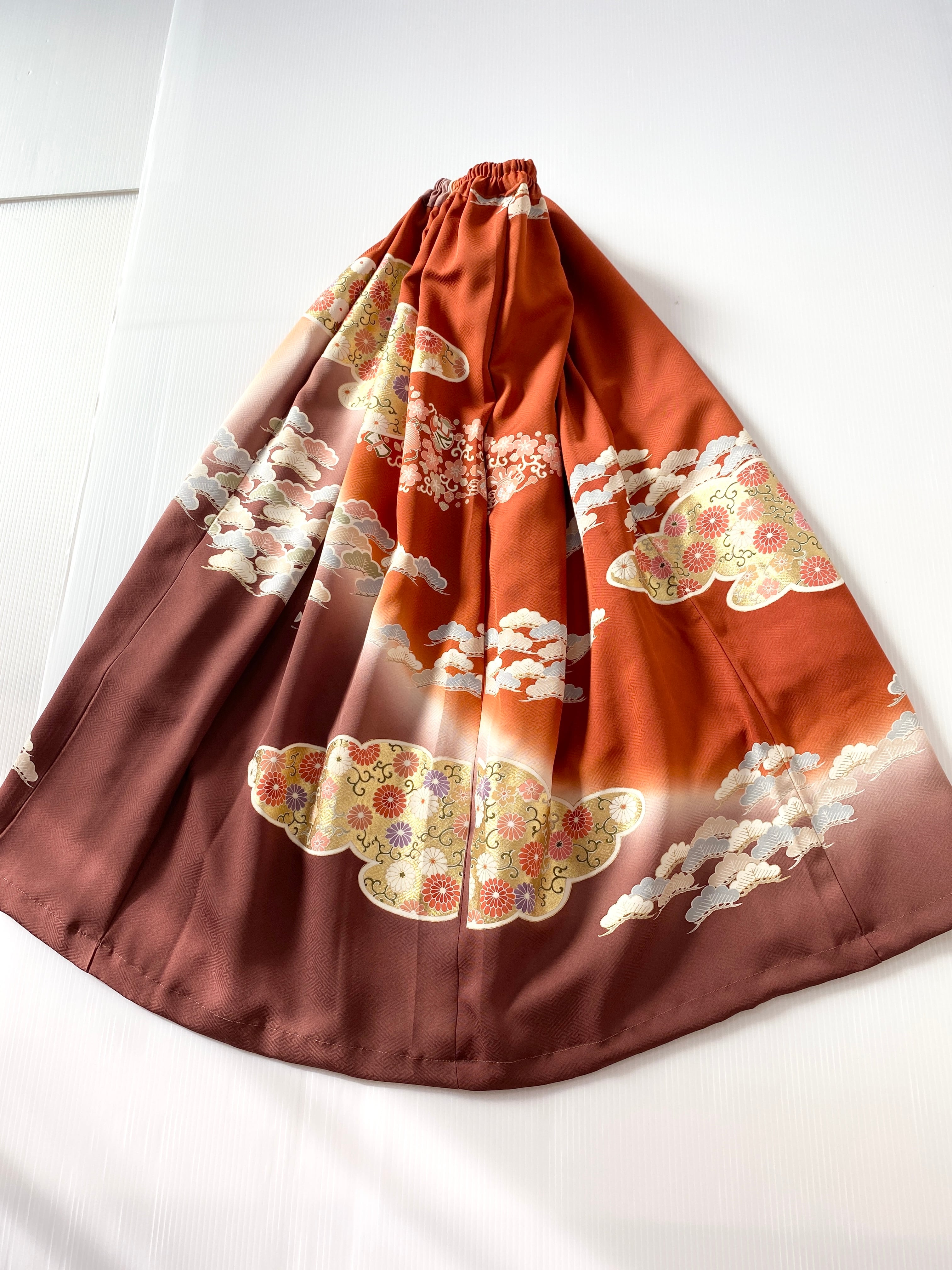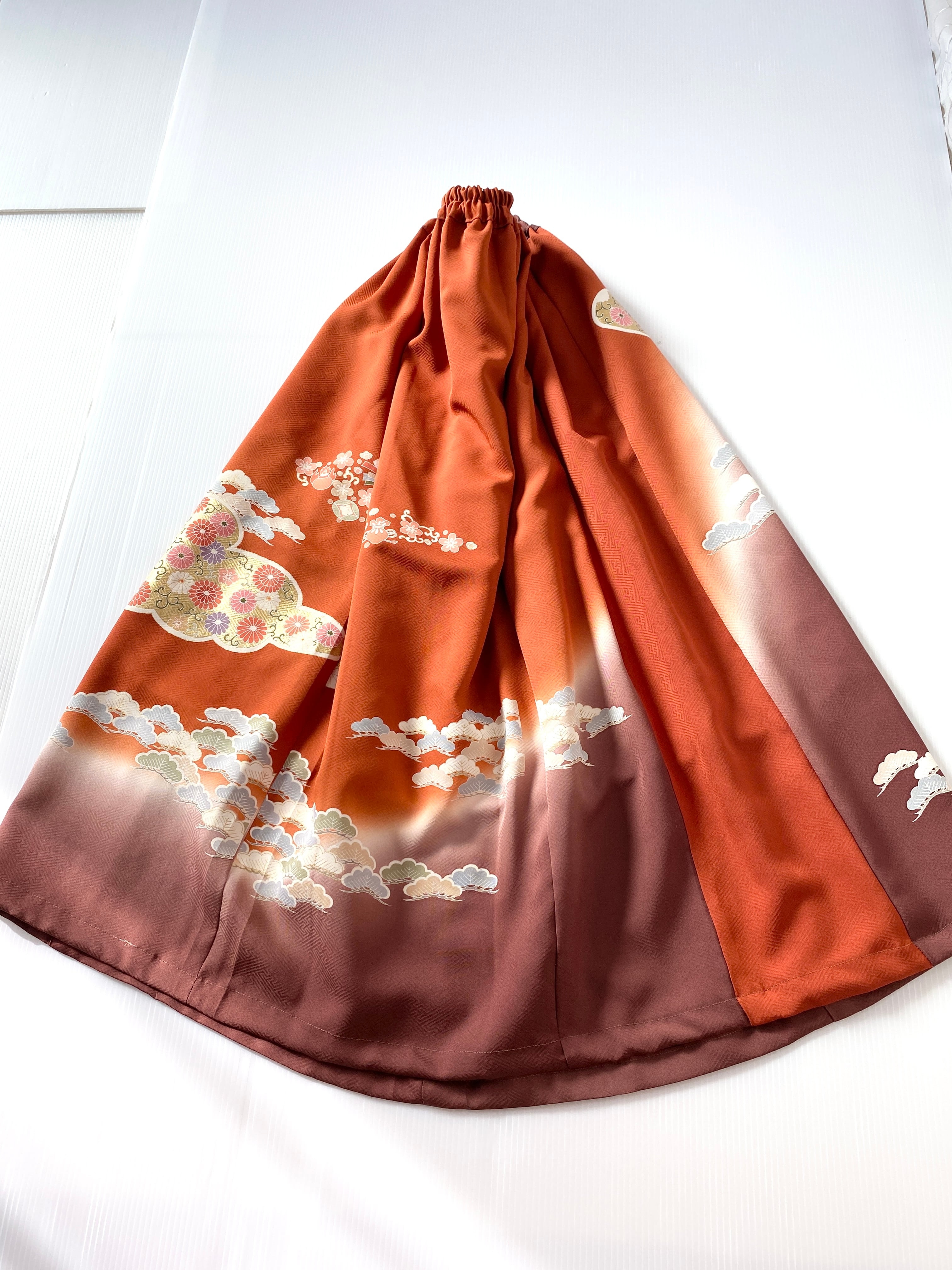 大人可愛い着物スカート【ふくよかさん用~4L】着物リメイクウエストゴムロングスカート大きいサイズフリーサイズ送料込みハンドメイドNO.5827