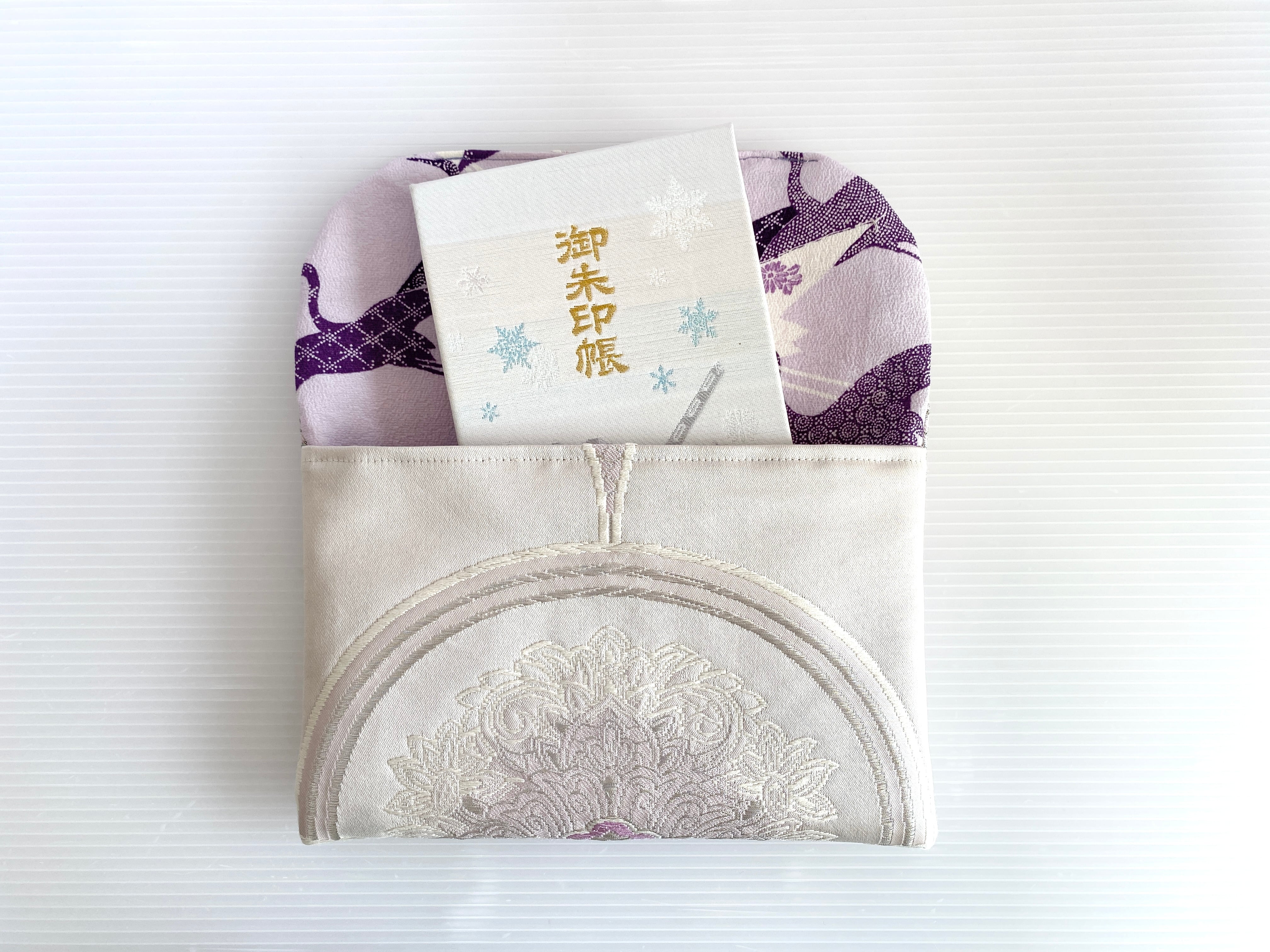 画像の御朱印帳は16㎝×11㎝の御朱印帳ですが、大きいサイズの18㎝×12㎝の御朱印帳も入ります 厚みにもよりますが2冊入る時もあります