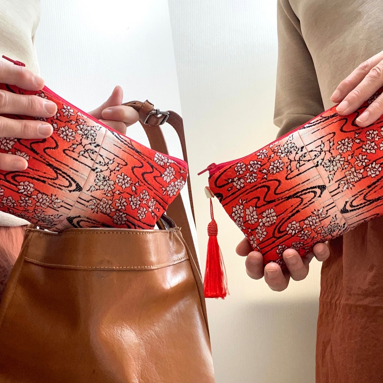 大人可愛いセレブポーチ帯リメイクポーチ化粧ポーチ マルチポーチ着物リメイクポーチ