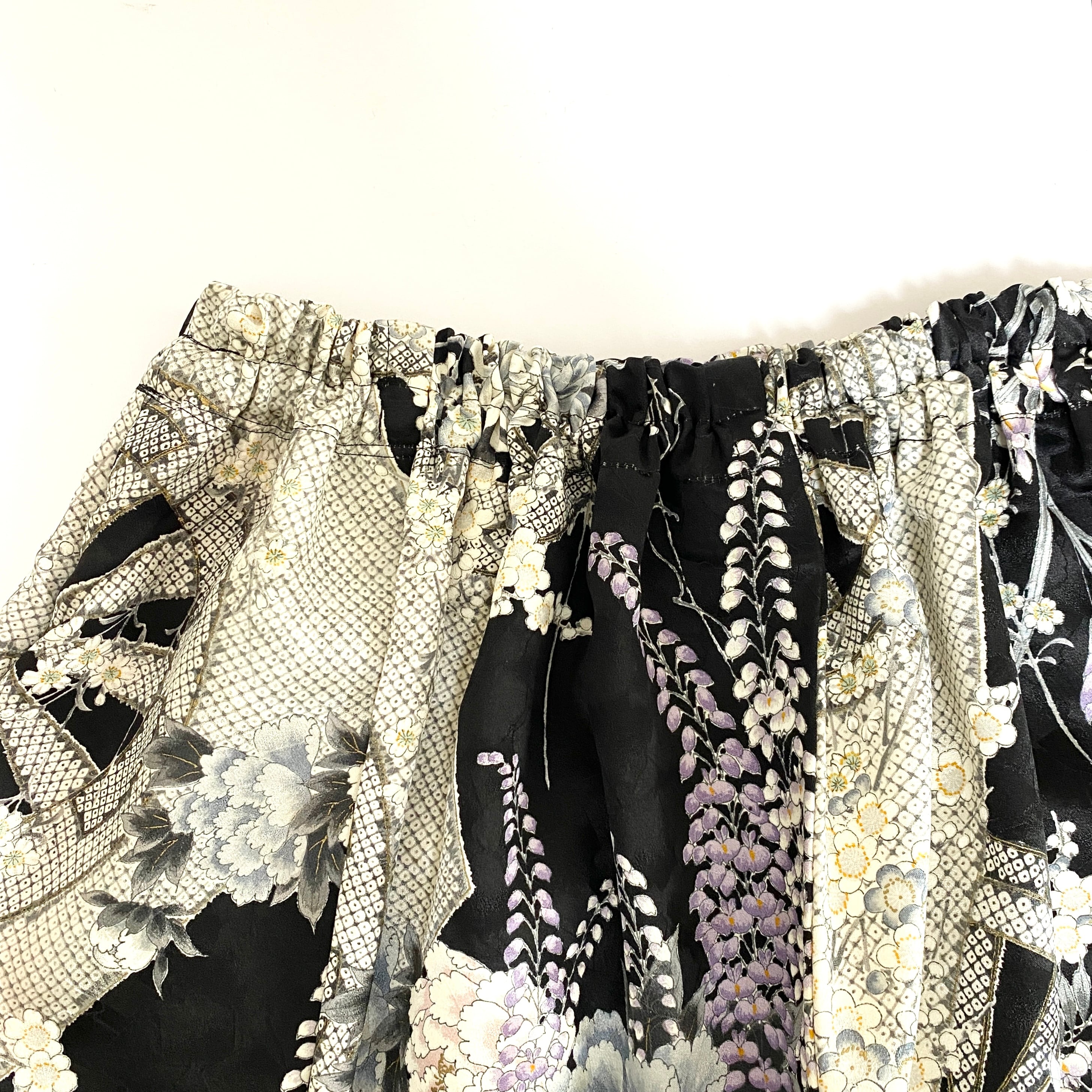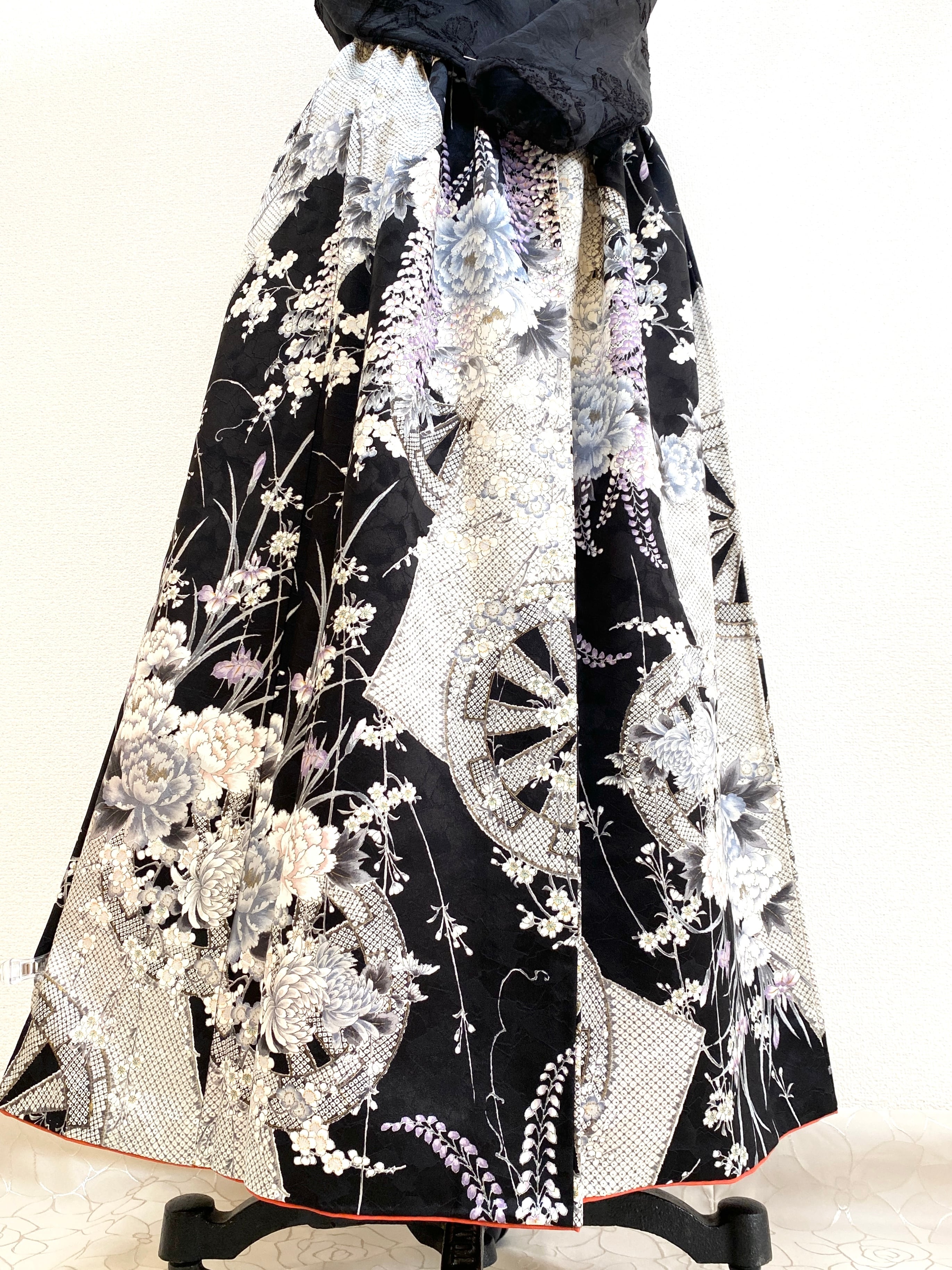 着物をリメイクして作製したウエストゴムロングスカートフリーサイズです