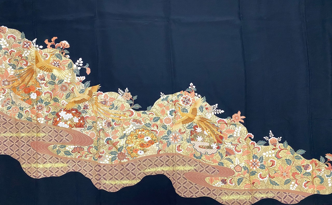 大人可愛いセレブ着物スカートフリーサイズ黒留袖着物リメイクウエストゴムロングスカート