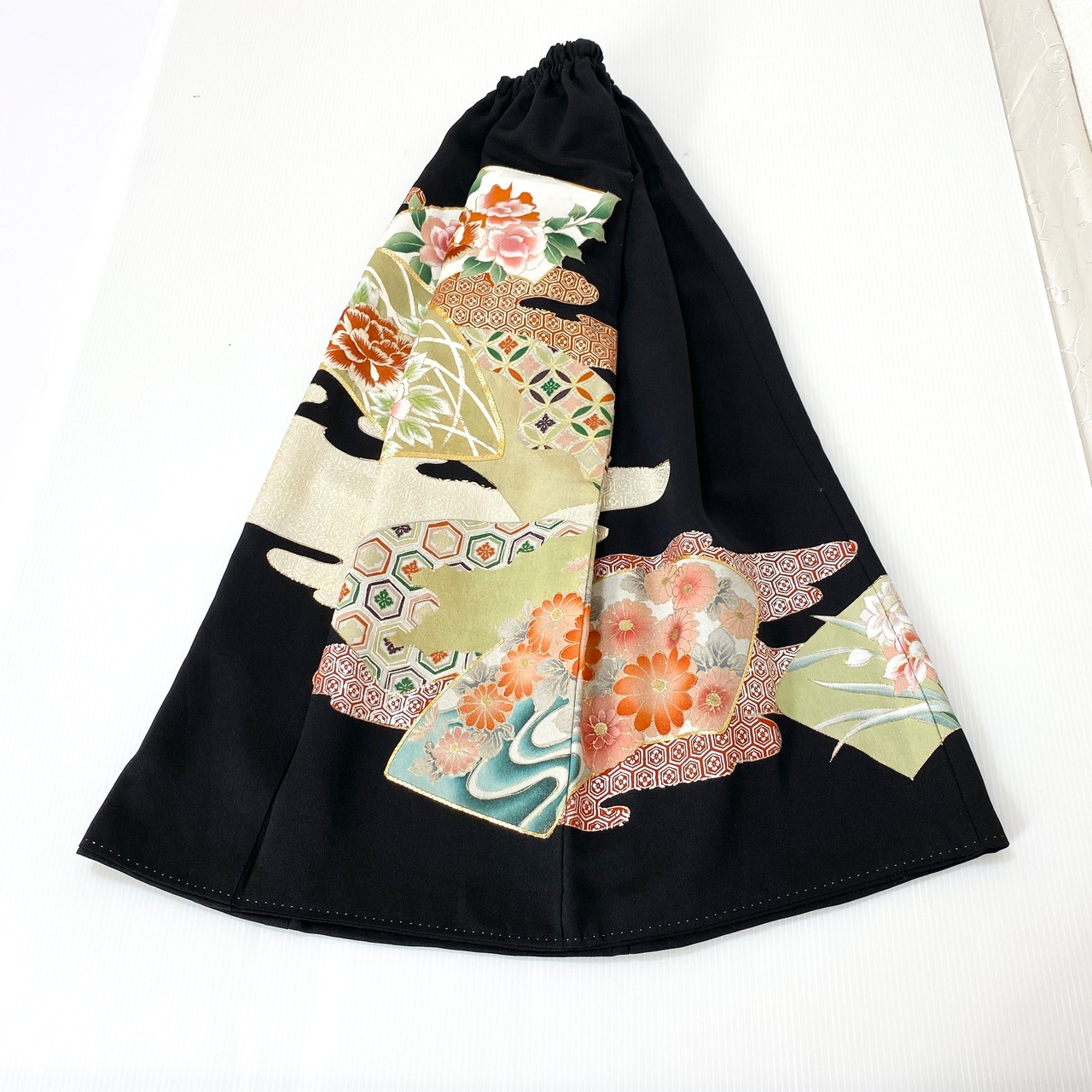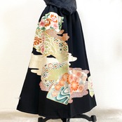 大人可愛いセレブ着物スカートフリーサイズ黒留袖着物リメイクウエストゴムロングスカート