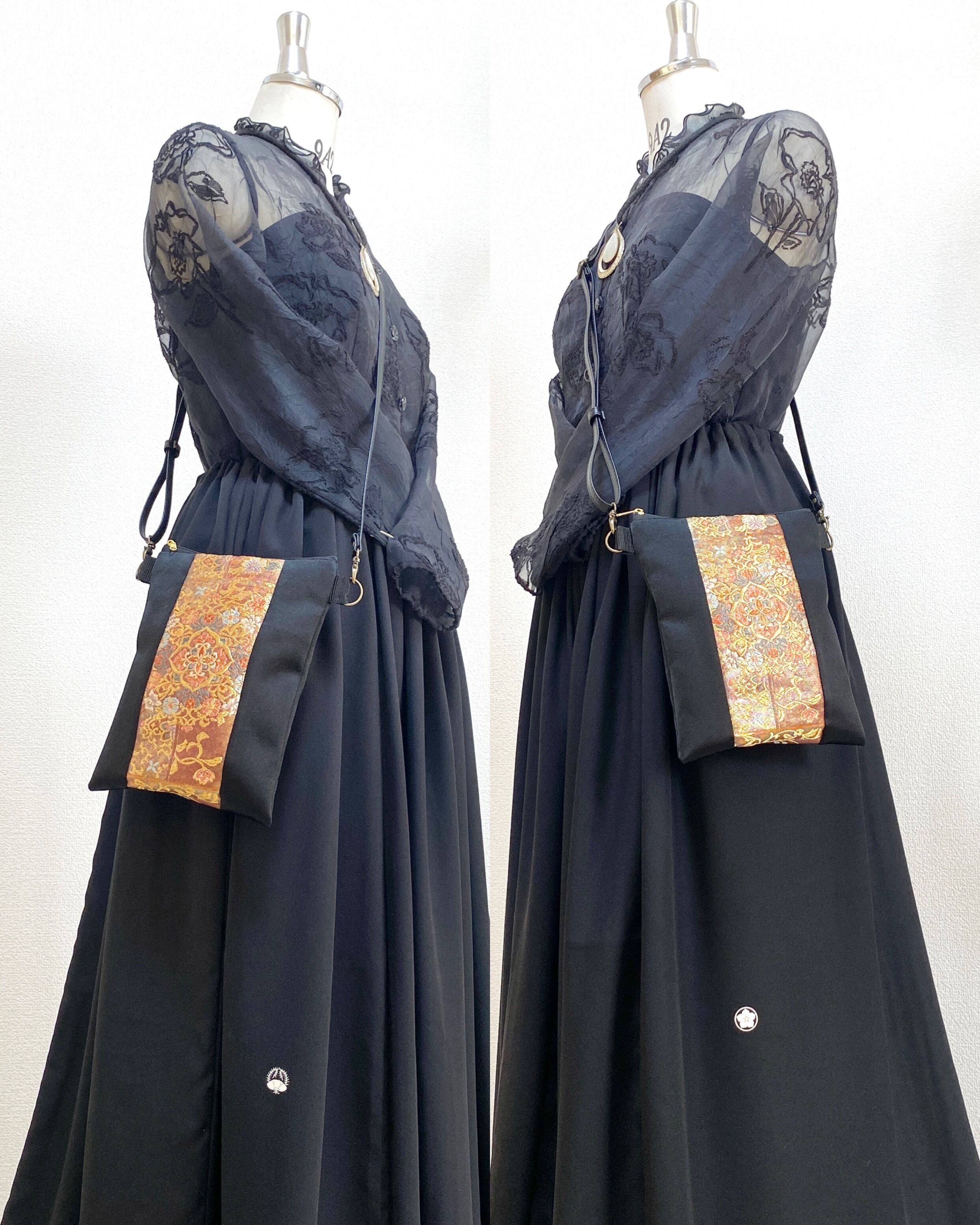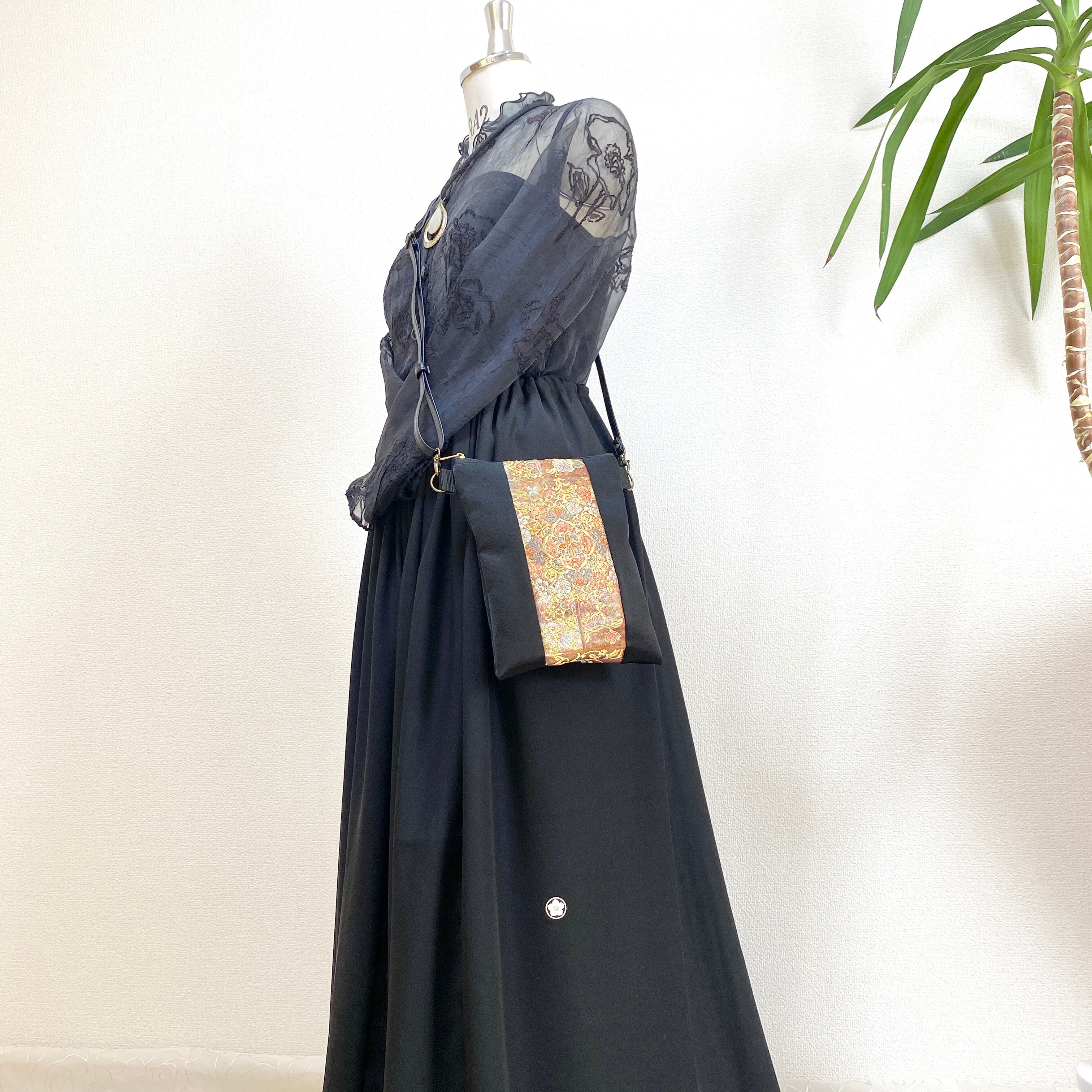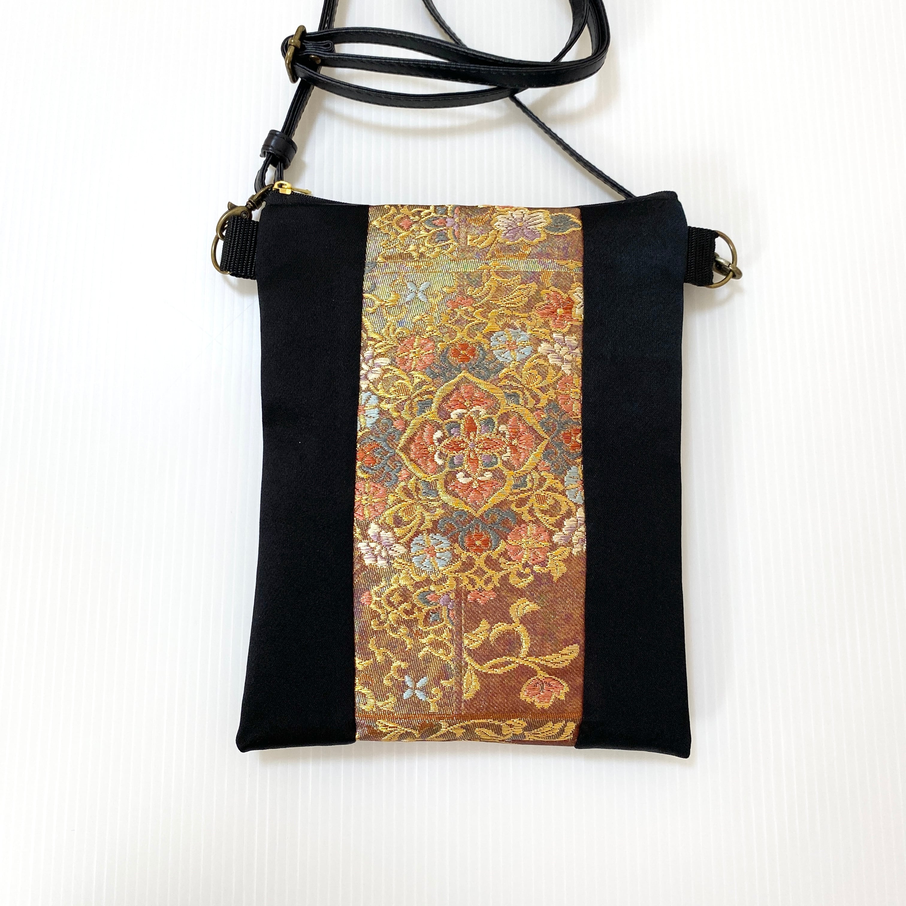 大人可愛いサコッシュバッグ帯リメイクサコッシュバッグ着物リメイクバッグスマホショルダー帯リメイクバッグハンドメイド送料込みNO.5863