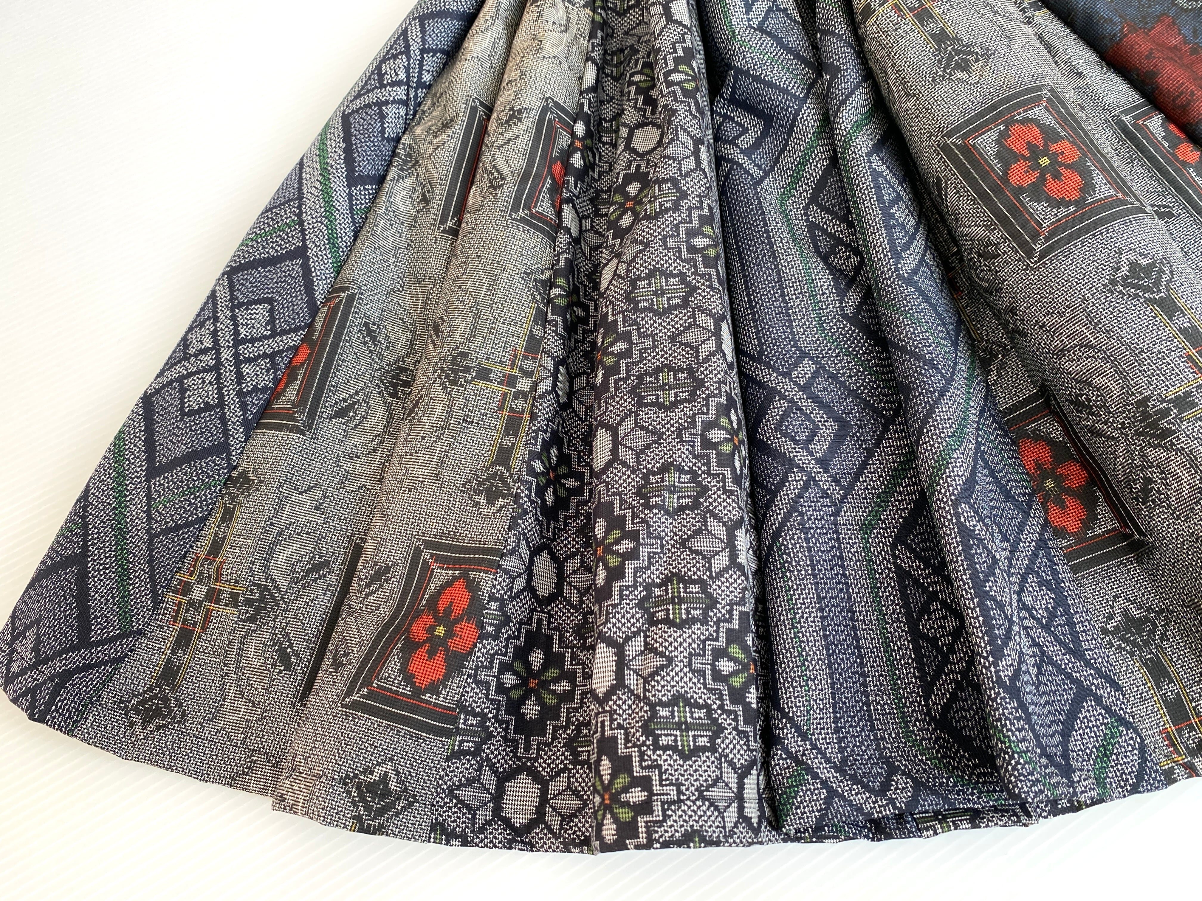 大島の着物をリメイクして作製したウエストゴムロングドレススカートフリーサイズです