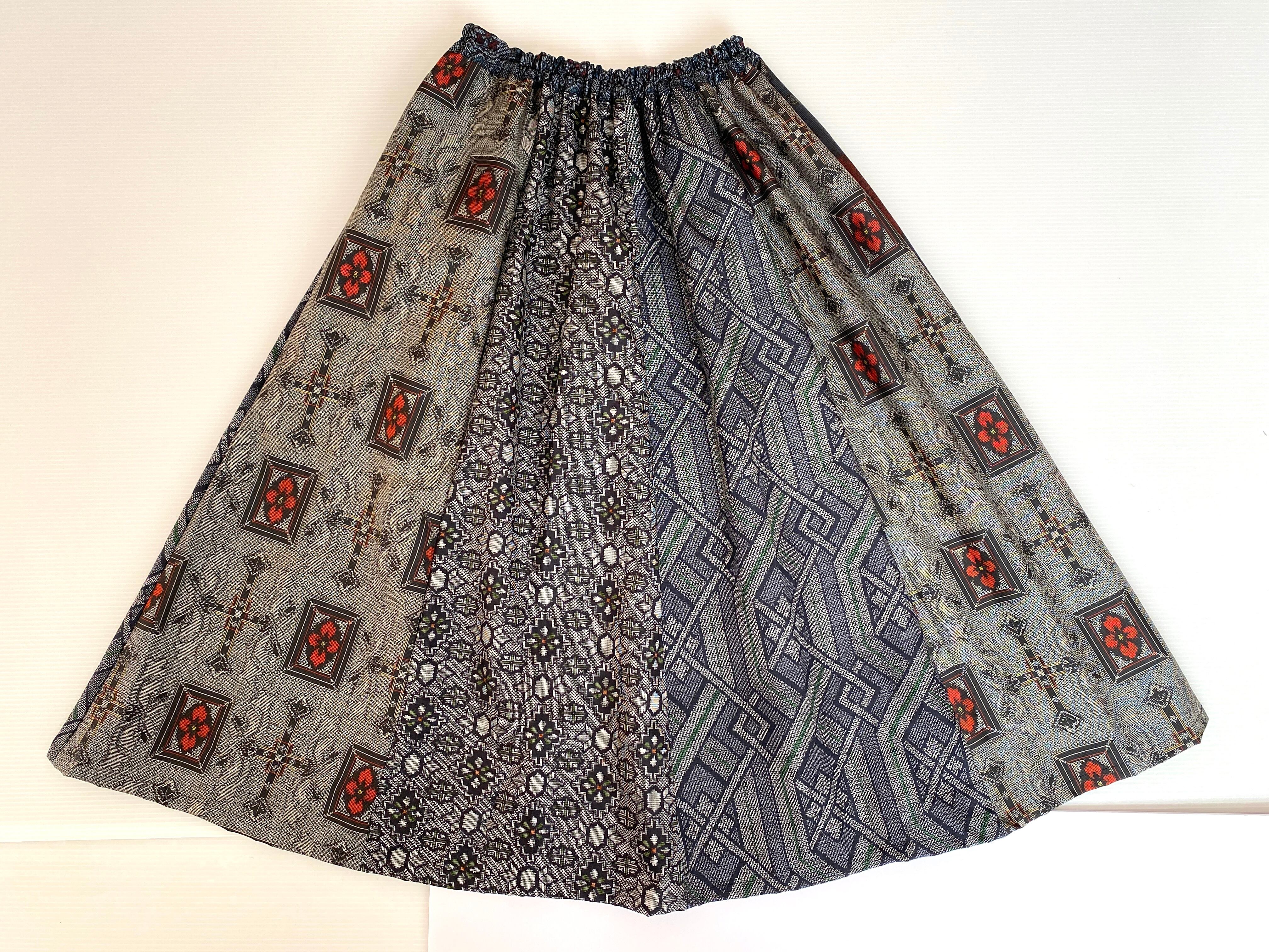 大人可愛いセレブ大島紬着物リメイクウエストゴムロングスカートフリーサイズ