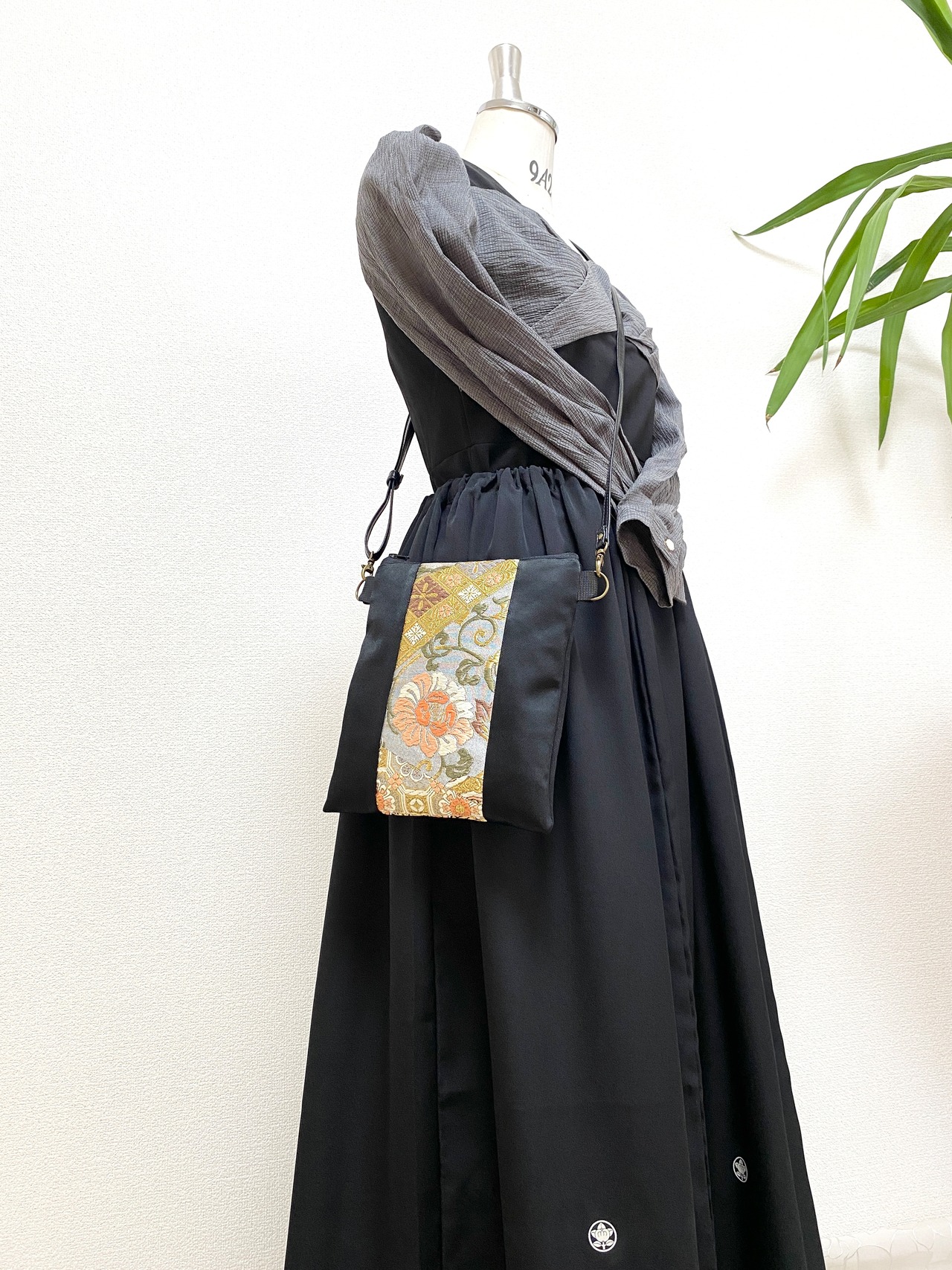 大人可愛いサコッシュバッグ帯リメイクサコッシュバッグ着物リメイクバッグスマホショルダー帯リメイクバッグハンドメイド送料込みNO.5866