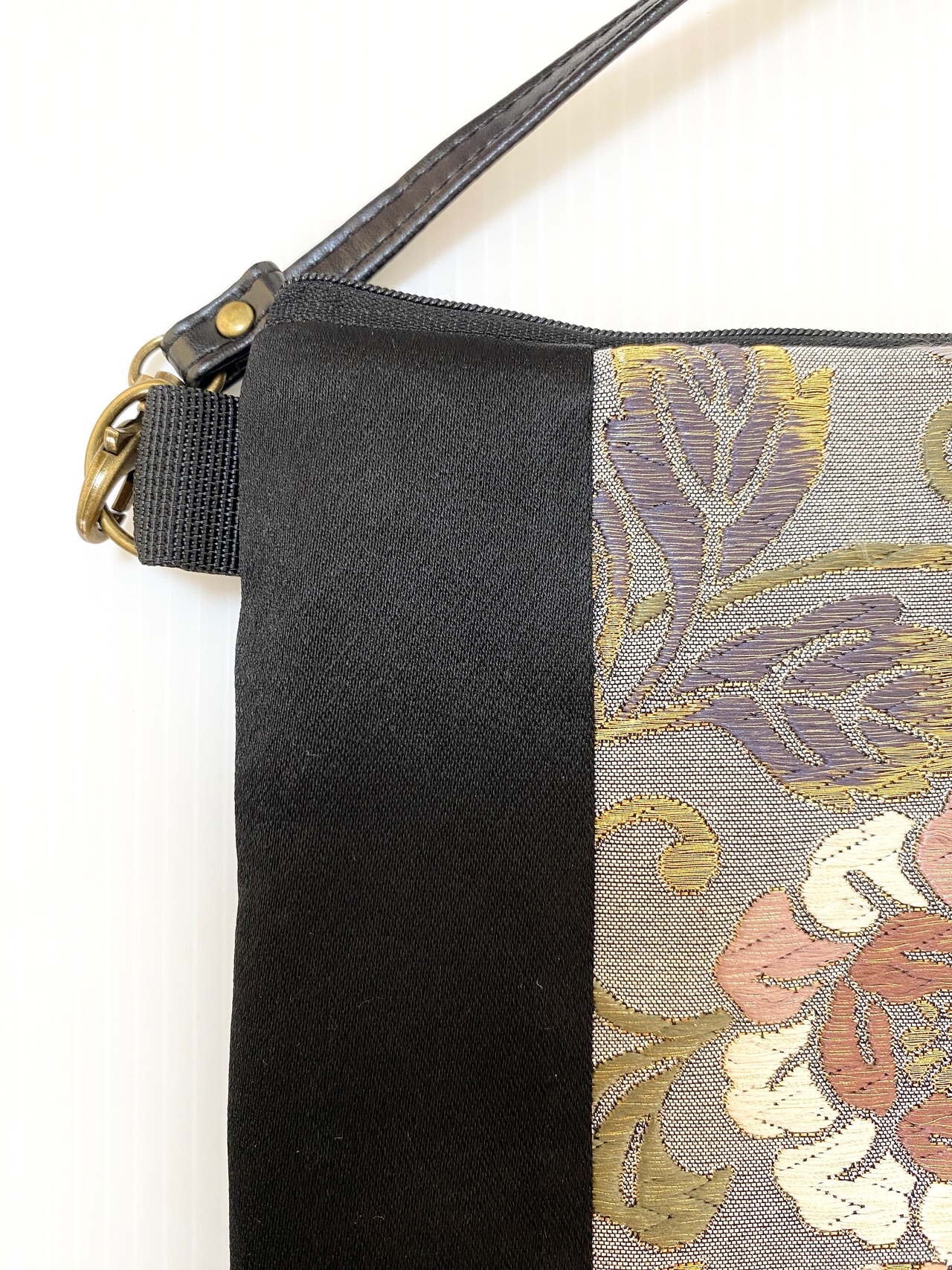 裏地にも着物と帯生地を使用しております。しっかりとした帯生地で製作したサコッシュバッグ、スマホショルダーですので強度もあり安心