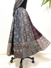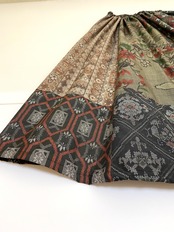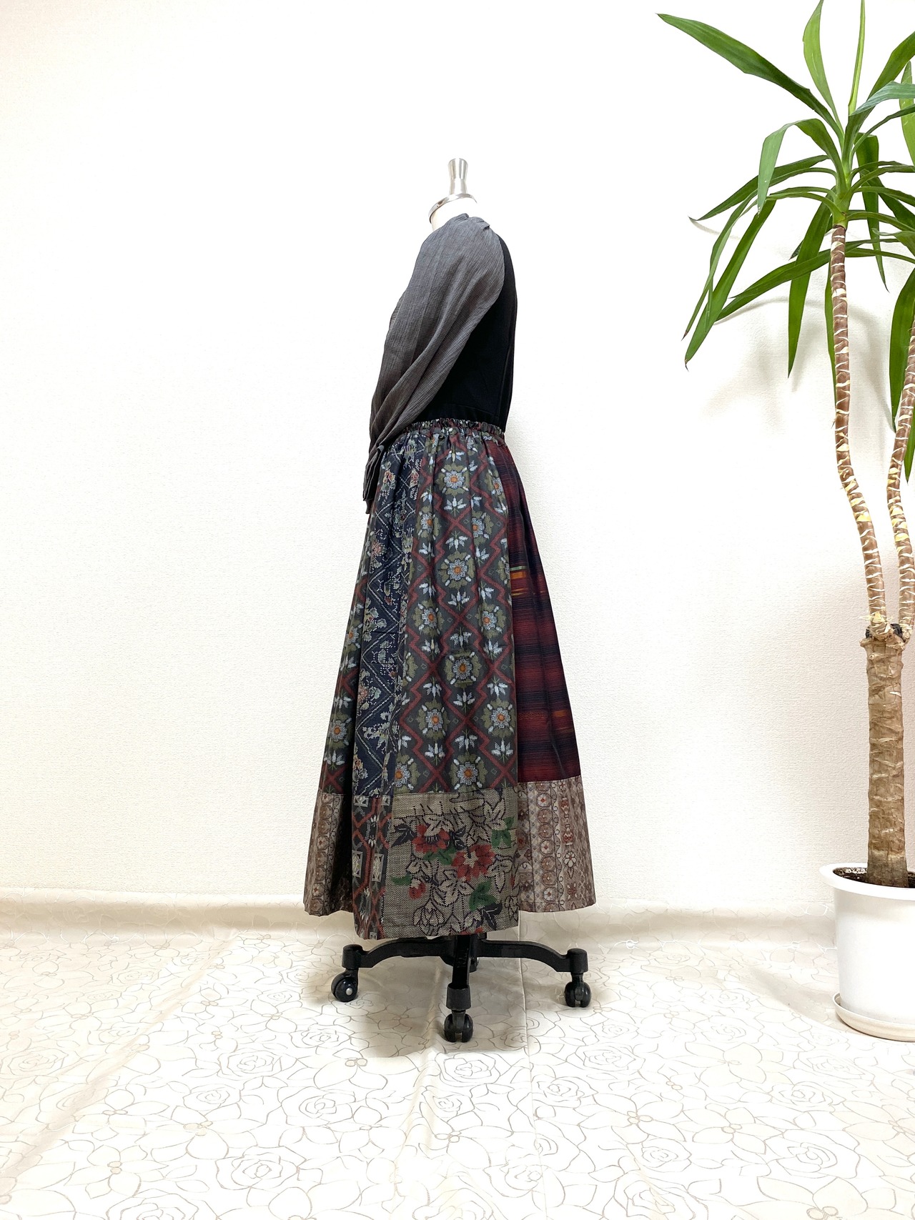 大人可愛いセレブ大島紬着物リメイクウエストゴムロングスカートフリーサイズ