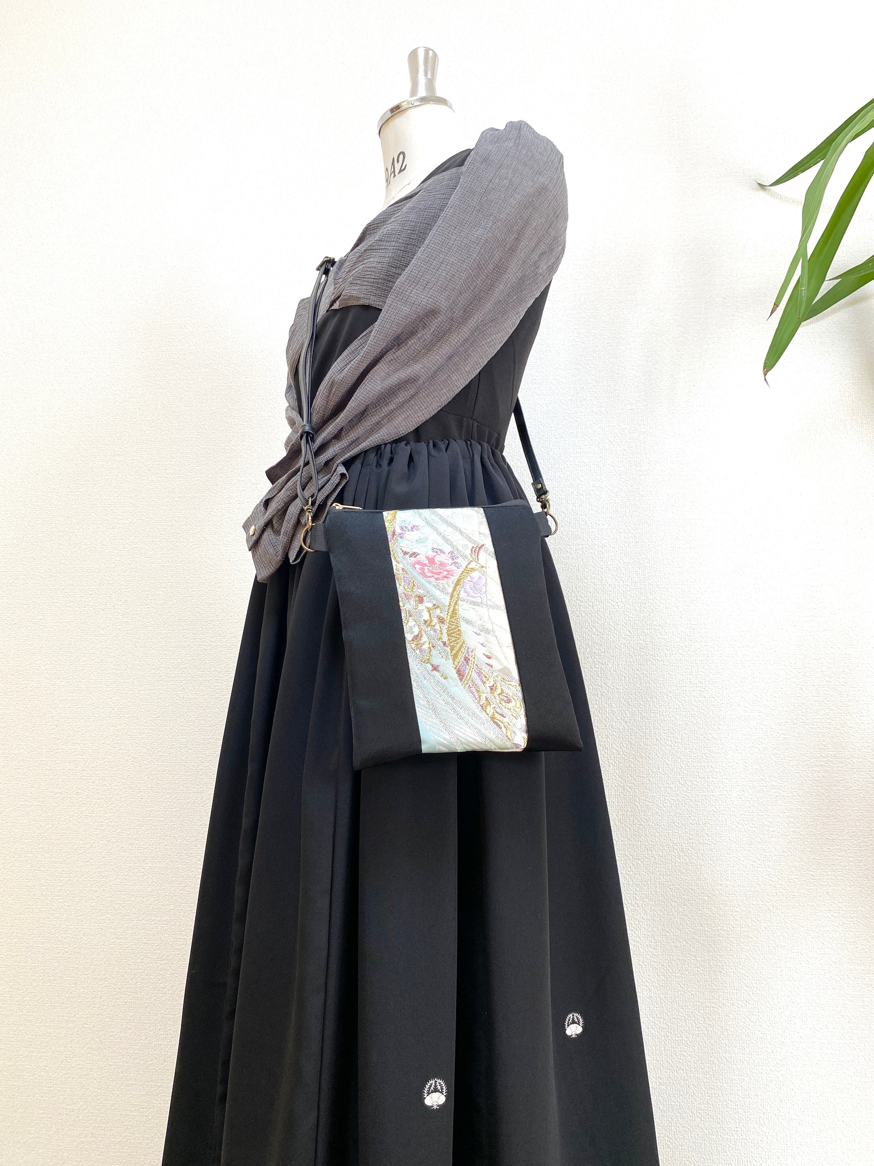 大人可愛いサコッシュバッグ帯リメイクサコッシュバッグ着物リメイクバッグスマホショルダー帯リメイクバッグハンドメイド送料込みNO.5871