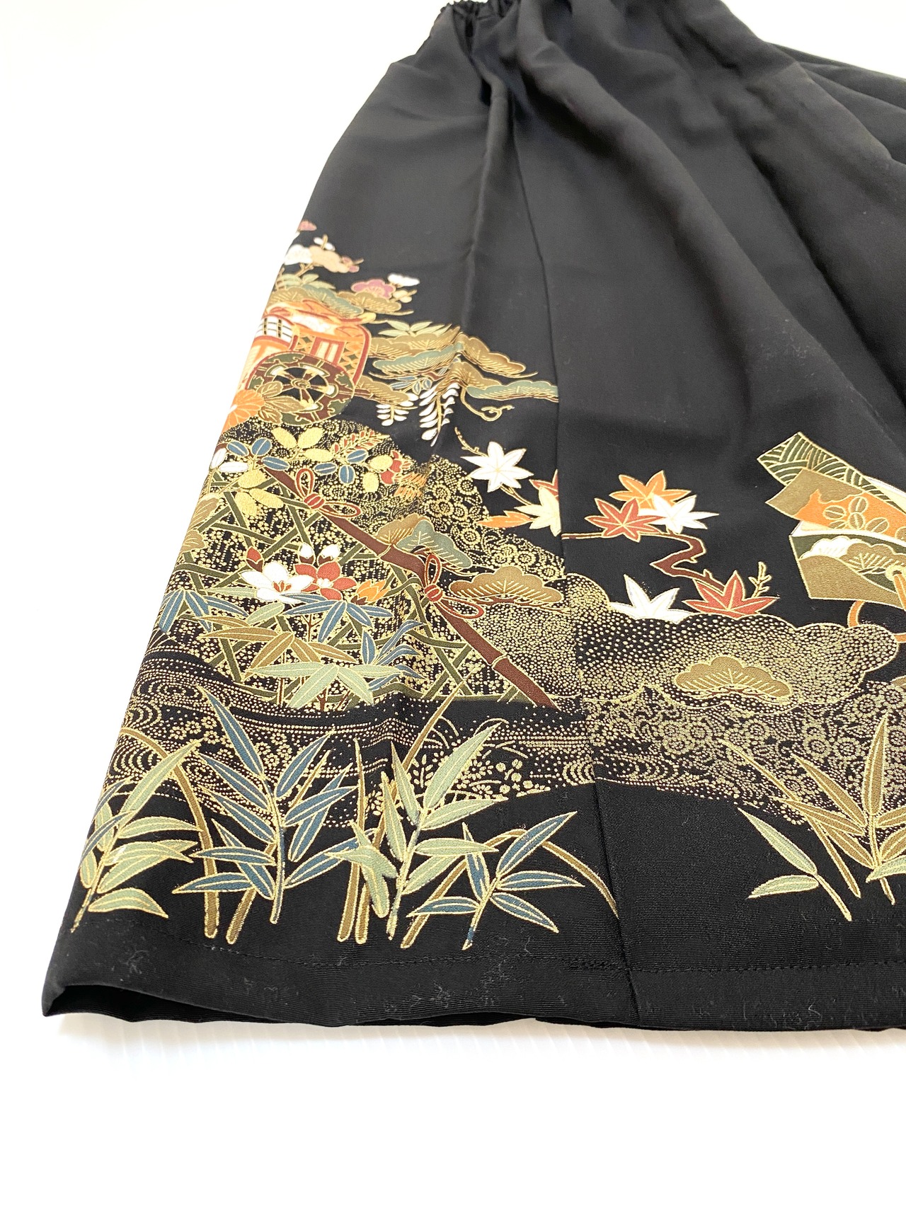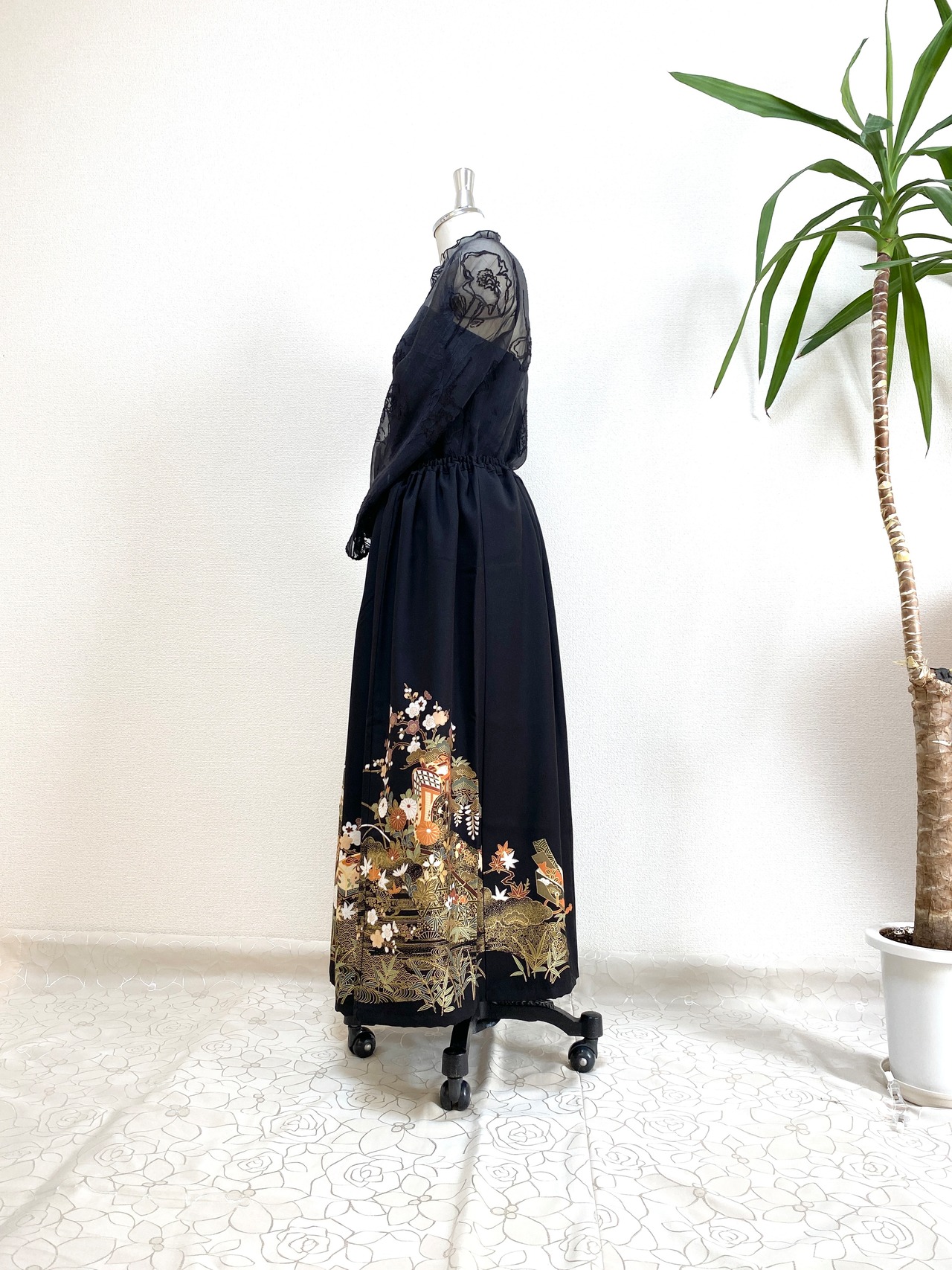 黒留袖着物をリメイクして作製したウエストゴムロングドレススカート大きいサイズ4Lです