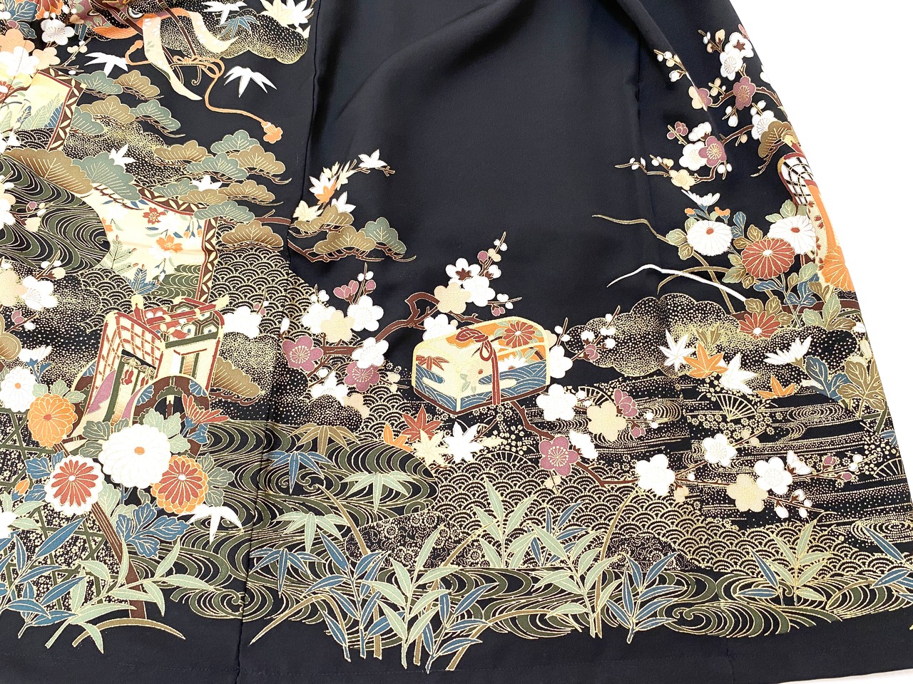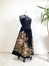 大人可愛いセレブ着物スカート大きいサイズ4L黒留袖着物リメイクウエストゴムロングスカート